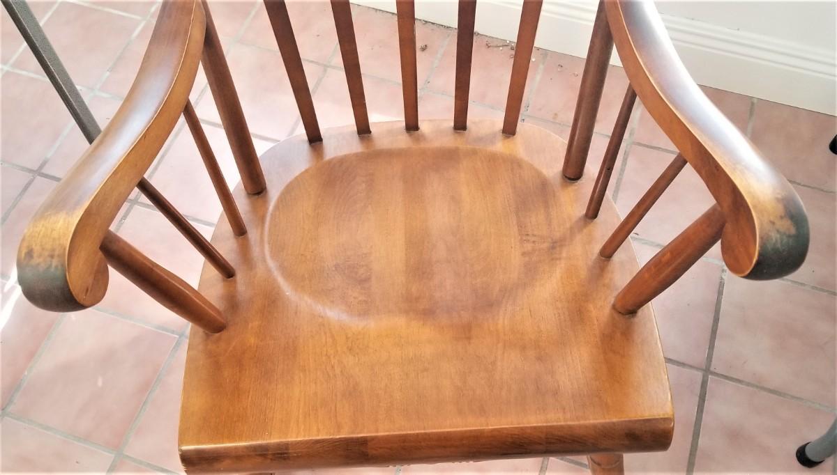 A classic chair from a good maker (Tell City Chair Company) - solid rock maple rocker, sturdy and comfy. Note some wear on the arms. 23.5" across, 41" tall. Mid Century Colonial design - check out Tell City furniture prices on ebay.