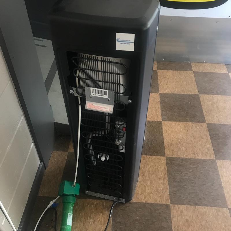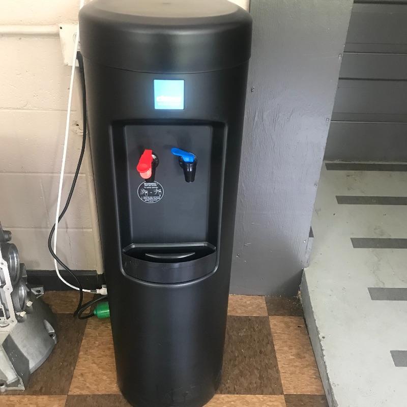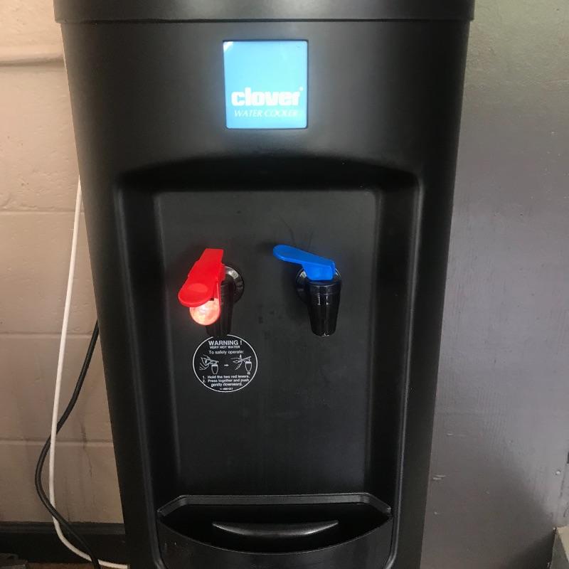 Hot and Cold water Cooler by Clover with water line and filter in great condition and comes with extra filter. Unit stands 38” tall.