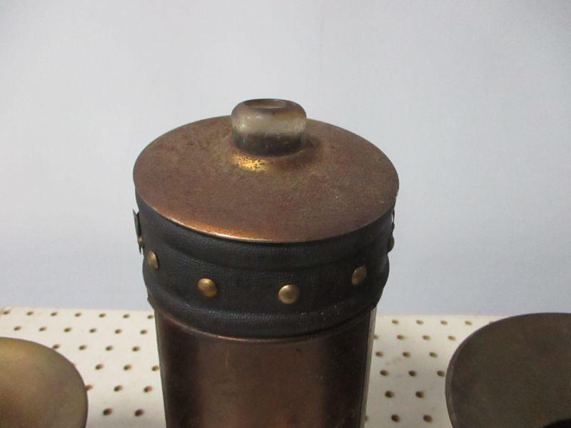 Lot 52 - Copper Spittoons & Liquor Decanter Brass Glass Bar Music Box Golf Bag