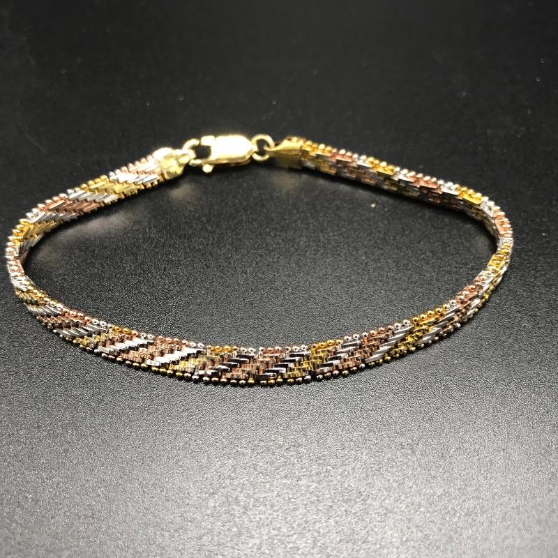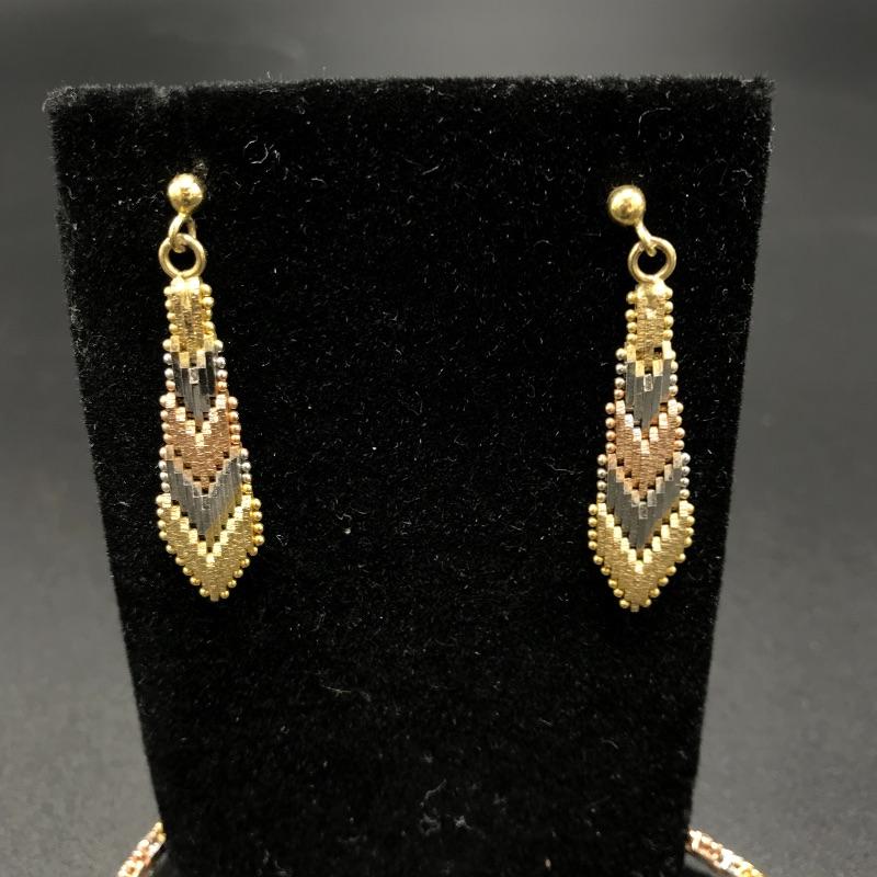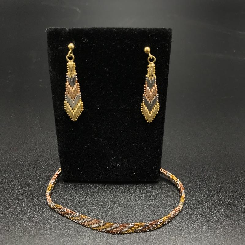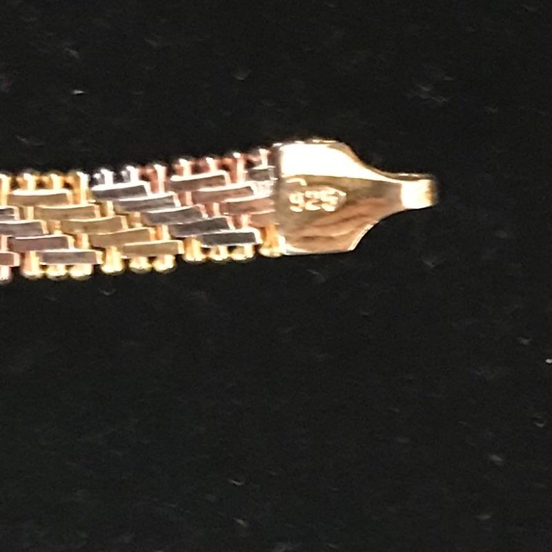 Silver, yellow and rose colored matching bracelet and earring set. Clasp on the bracelet is stamped 925.