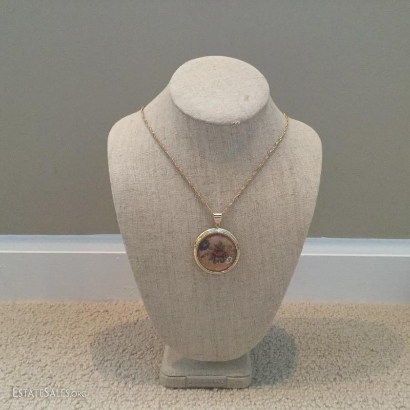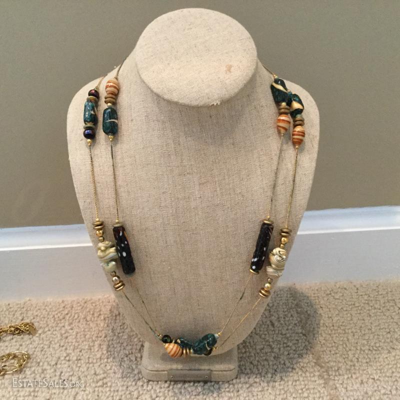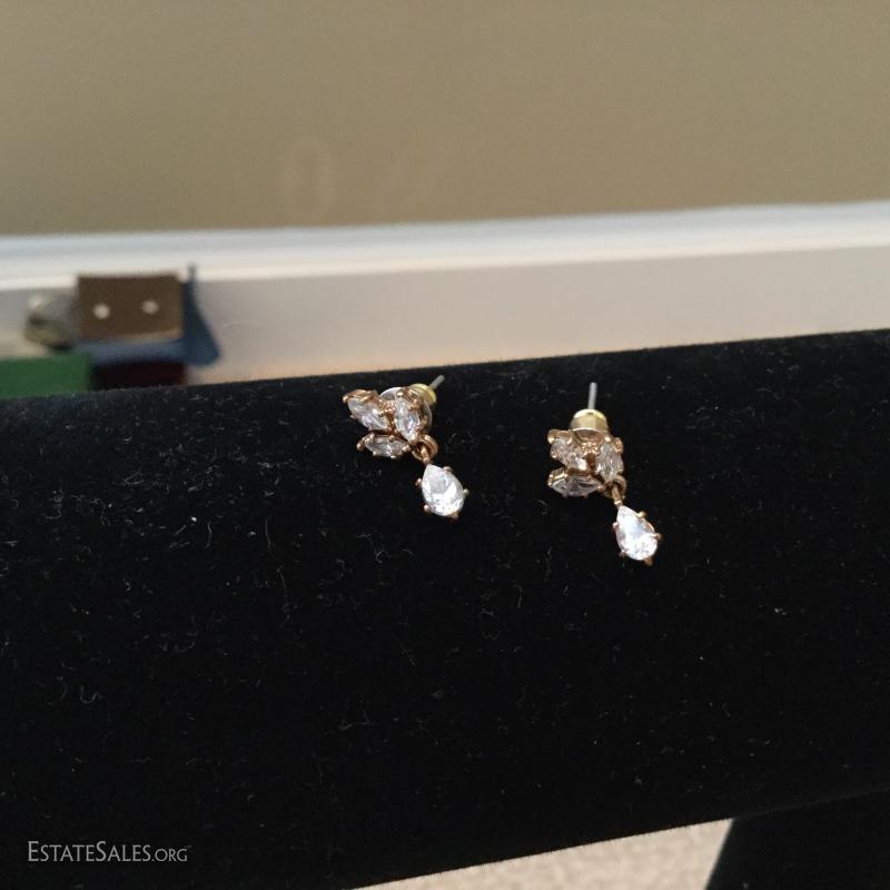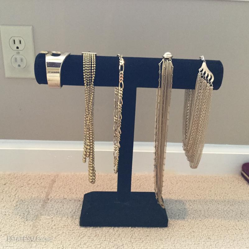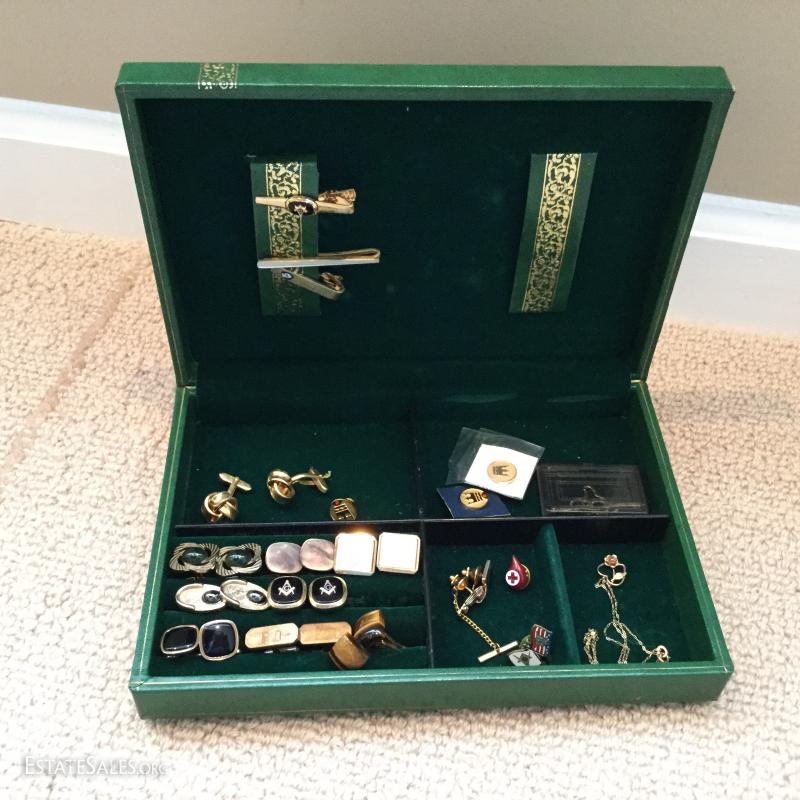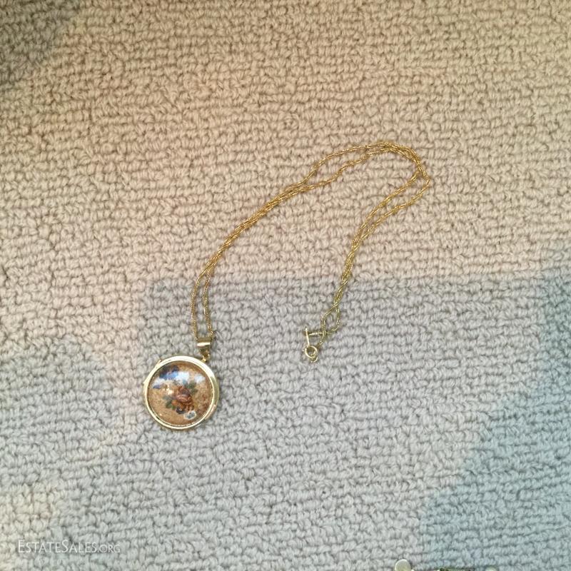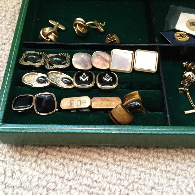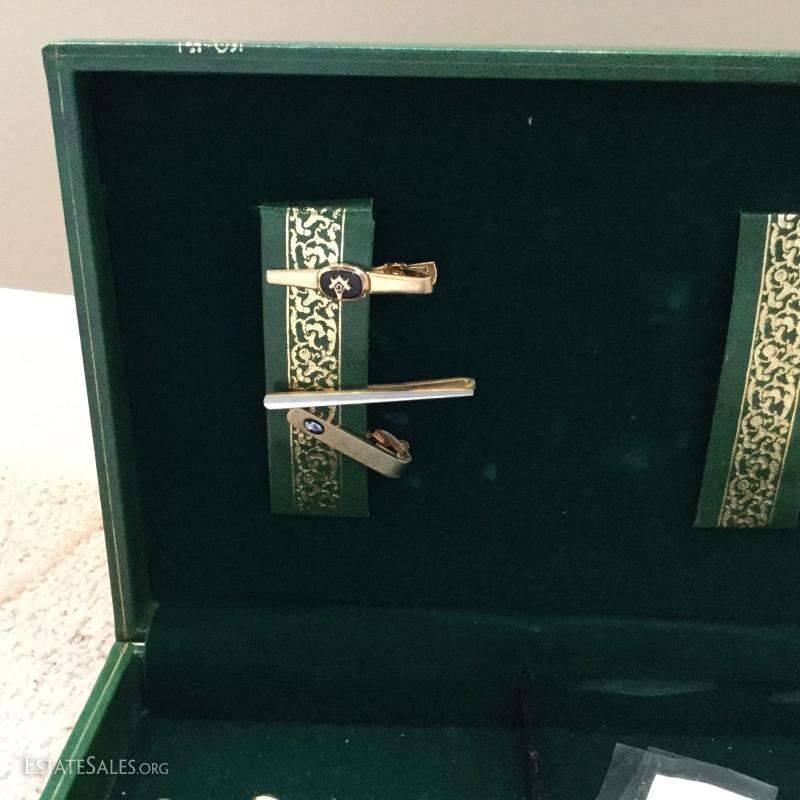 Gold necklaces, earrings, watches, pins, rings and bracelets. Watch necklace by Buler 17 Jewels. Wrist watch by Caravelle. No visible markings regarding gold content on any items in lot. See photos for details.
