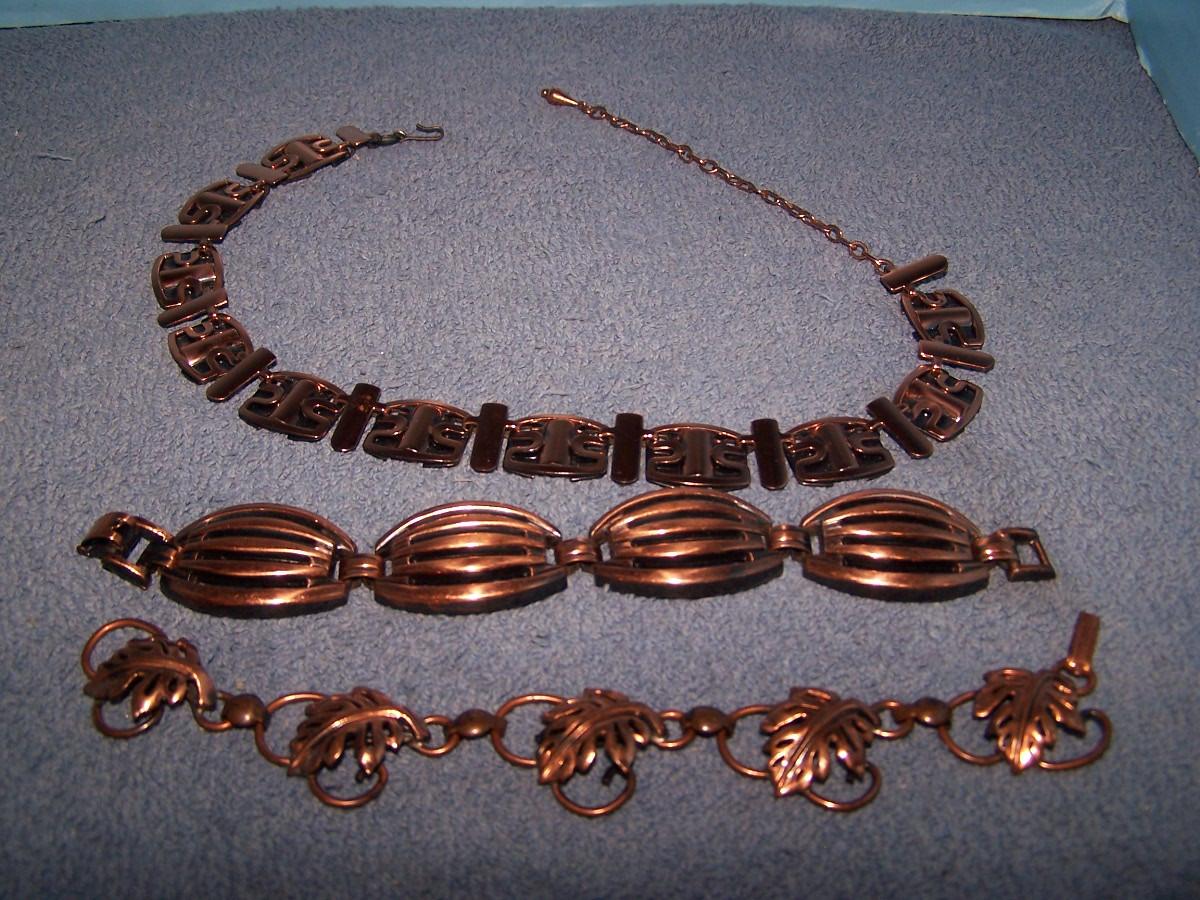 THIS IS SOME GREAT VINTAGE COPPER JEWELRY! UNMARKED. NECKLACE IS 18 1/4'' TOTAL LONG.. LIGHT WEAR..