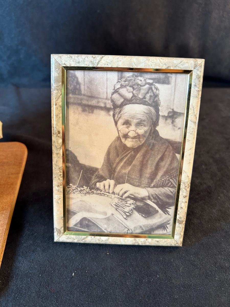 Includes small framed photo of the woman who inspired the piece. includes lace ornament from Bruges - not shown