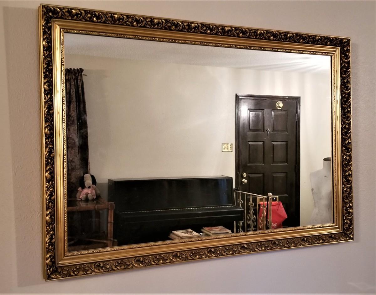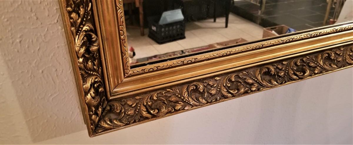 Large, heavy wall mirror - gilded wooden frame - good condition. 51" across, 35" tall. A classic!