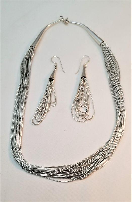 Lot #52  "Liquid" Sterling silver necklace and matching earrings