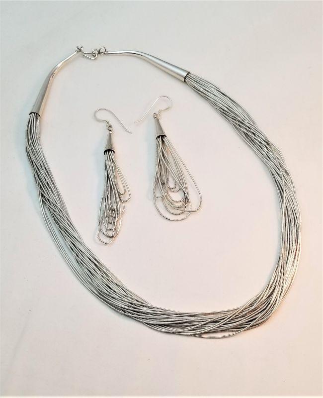 Lot #52 "Liquid" Sterling silver necklace and matching earrings