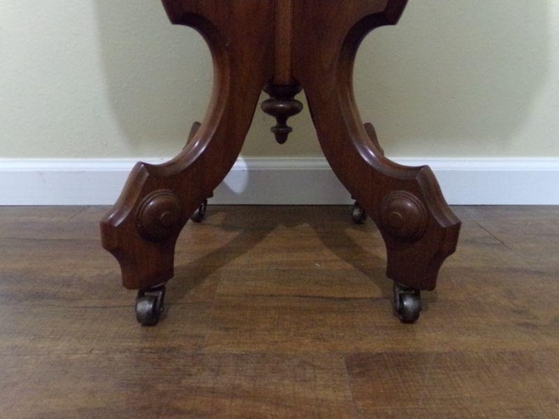 LOT 52 MARBLE TOP ANTIQUE SIDE TABLE ON CASTERS