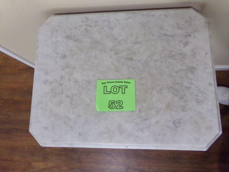 LOT 52   MARBLE TOP ANTIQUE SIDE TABLE ON CASTERS