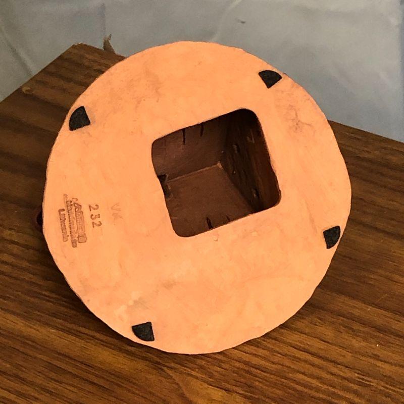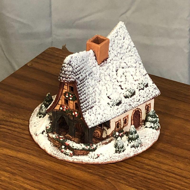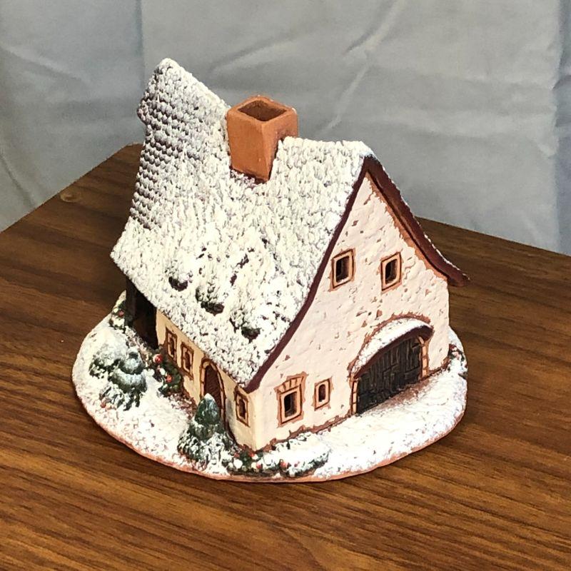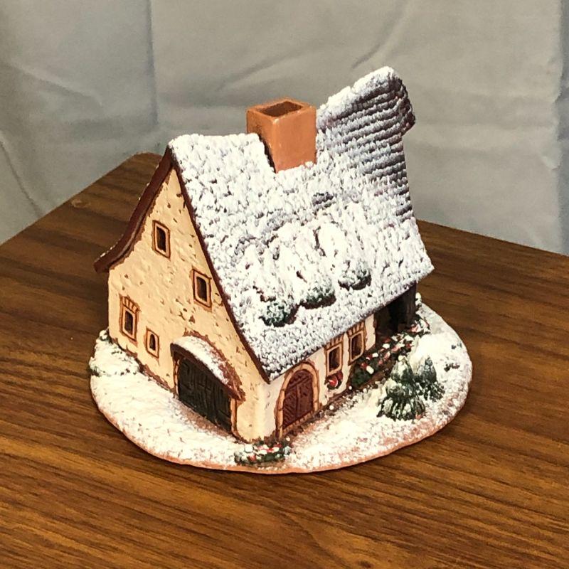 Here is another one for those of you who re-sell - check it out on Google and eBay. This is a terracota material with applied snow and tons of details. You can put a tealight in the bottom or a small incense cone. Excellent condition. It is about 4" tall.