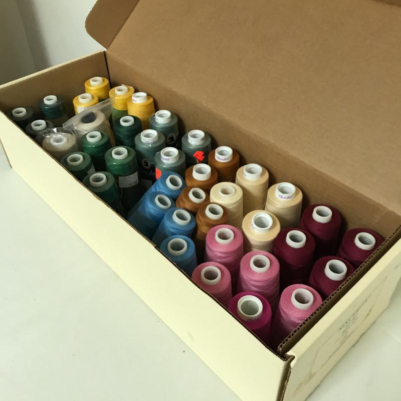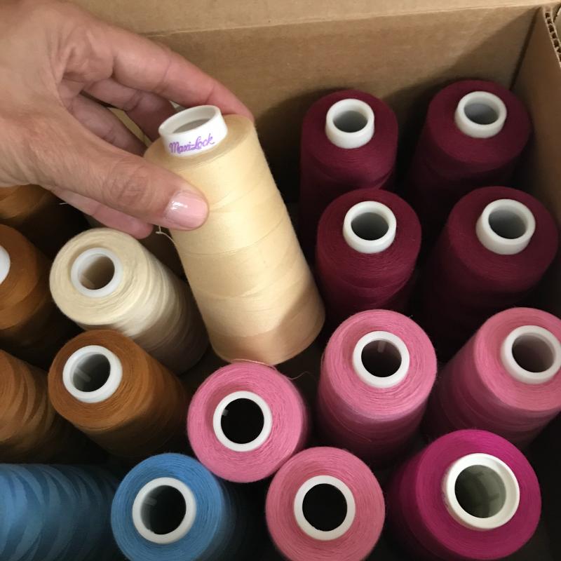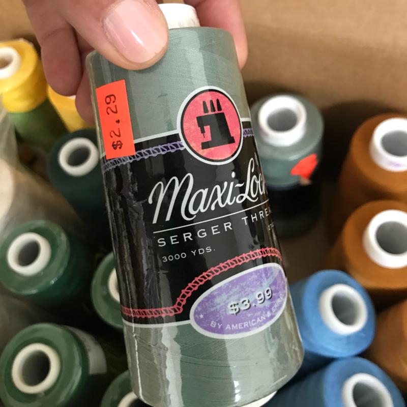 This lot includes a box full of Serger Thread by Maxi-Lock and by Ultra lock. Most are new in packaging or appear to have never been used. 39 total. Shipping available