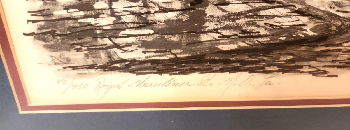 Signed/Numbered 18/450 Limited edition print from Listed Artist Eugene "Gene" Daymude (1925-1995) - Royal and Ursulines (French Quarter). Double matter, 19.5" x 25.5" - good condition.