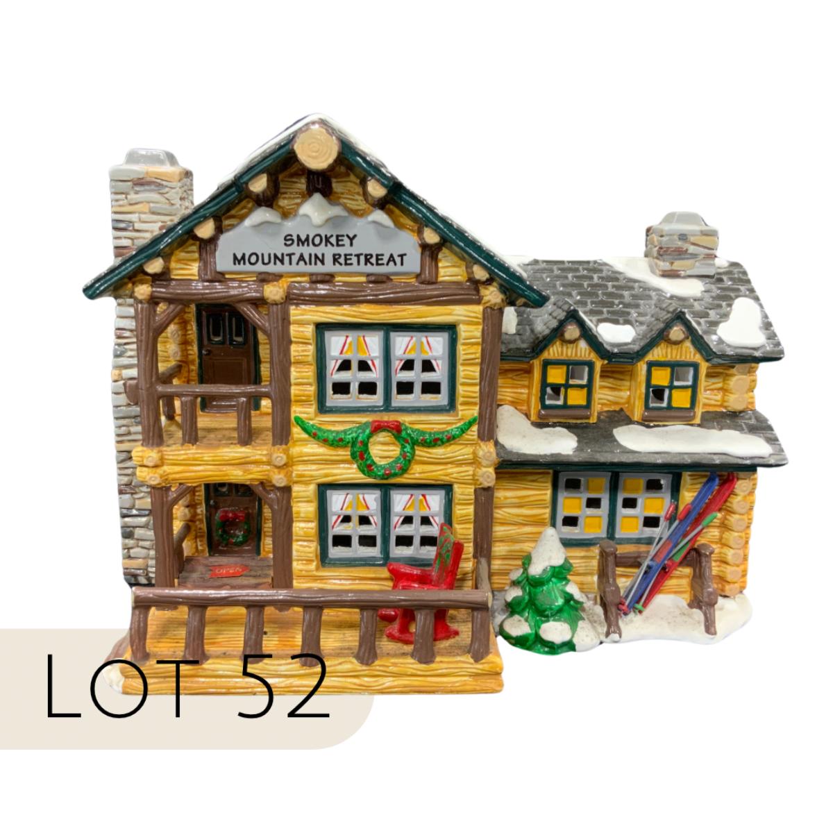 Department 56 Snow Village Smokey Mountain Retreat house. In good used condition. Will need a light cleaning, we did most of the dusting for you. Please see photos for details and condition. ::: Shipping is available on this lot. If you require shipping you must let us know at the close of the auction. We will coordinate with you after the item has been won. Shipping fees will include insurance up to or exceeding the value of all items being mailed. If you have any questions regarding this lot please contact the auctioneer either via this website, by direct email or by phone. PICK UP TIMES and other important information can be found in the TERMS and DESCRIPTION of the auction. Please take a look for pertinent information. Thanks! Any condition statement is given as a courtesy to a client, is an opinion, and should not be treated as a statement of fact. Reference to condition written, oral or within a condition report shall not be regarded as a full account of condition and may not include all defects, alterations, or restorations. Absence of a condition report does not imply a lot is flawless or lacking imperfections or damage. Katherine’s Auction & Appraisal Service shall have no responsibility for any error or omission. Returns shall not be accepted on the basis of condition.