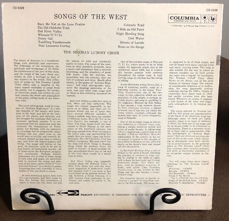 Lot #52 "Songs of the West" The Norman Luboff Choir Columbia CS 8329