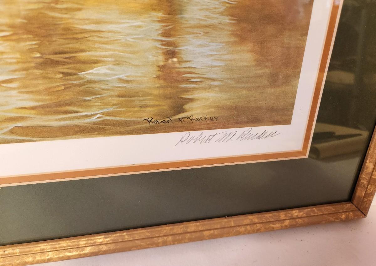 Nice swamp/Pelican print - double matted - done/signed by listed artist Robert Rucker. 29" across, 25.5" tall. A Nice piece.