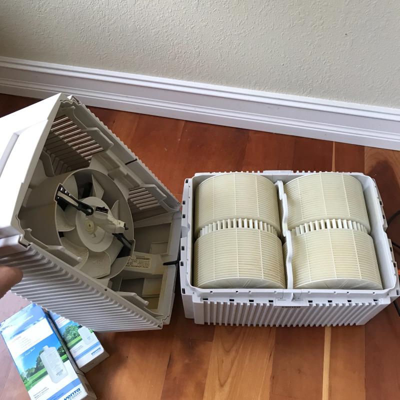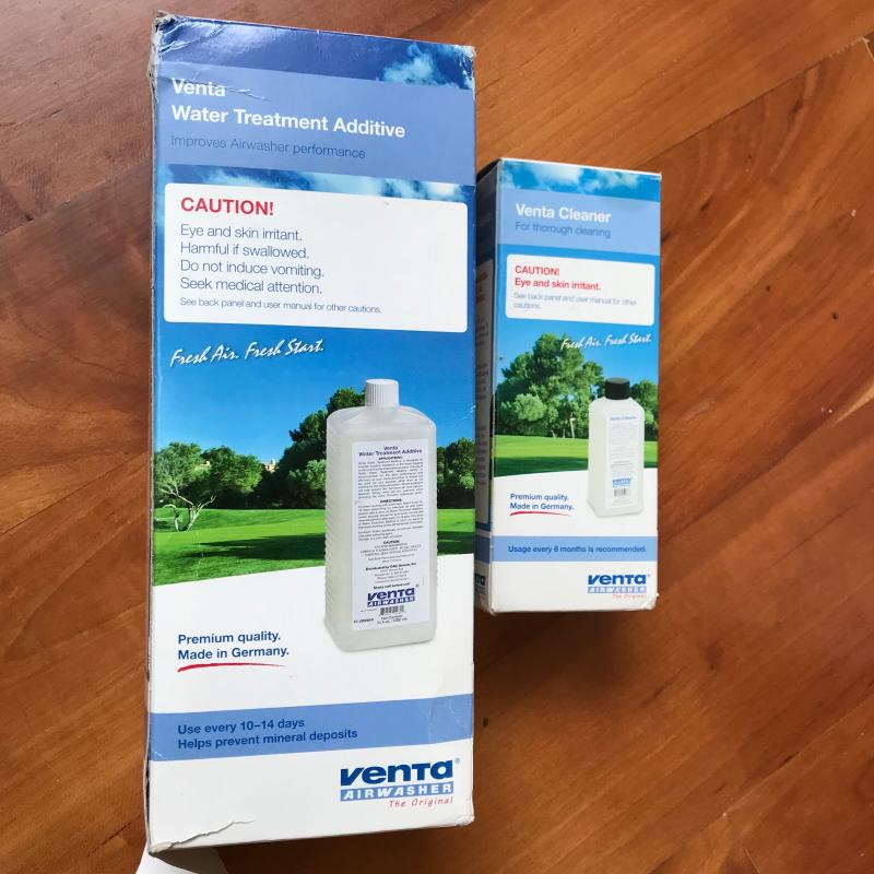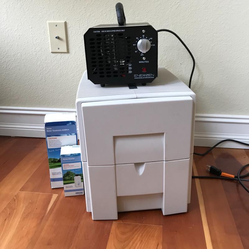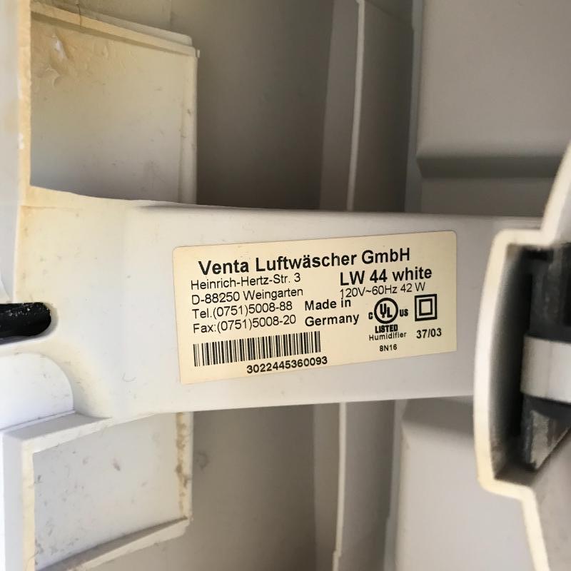 Two working air filtration systems. First, a Venta Airwasher (LW44) with two bottles of mineral deposit (35oz & 8.5oz bottles, both appear opened, but barely used). Next is the advanced portable air purification system by Enerzen( model 0-777) The Venta is a little dusty, the Enerzen appears barely used. No shipping.
