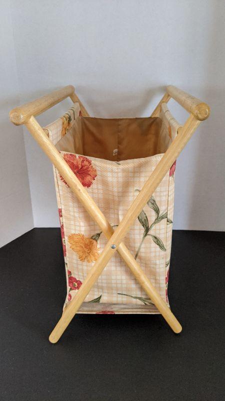 Lot # 12 -Vintage folding Knitting Sewing Needlework Basket Tote Caddy