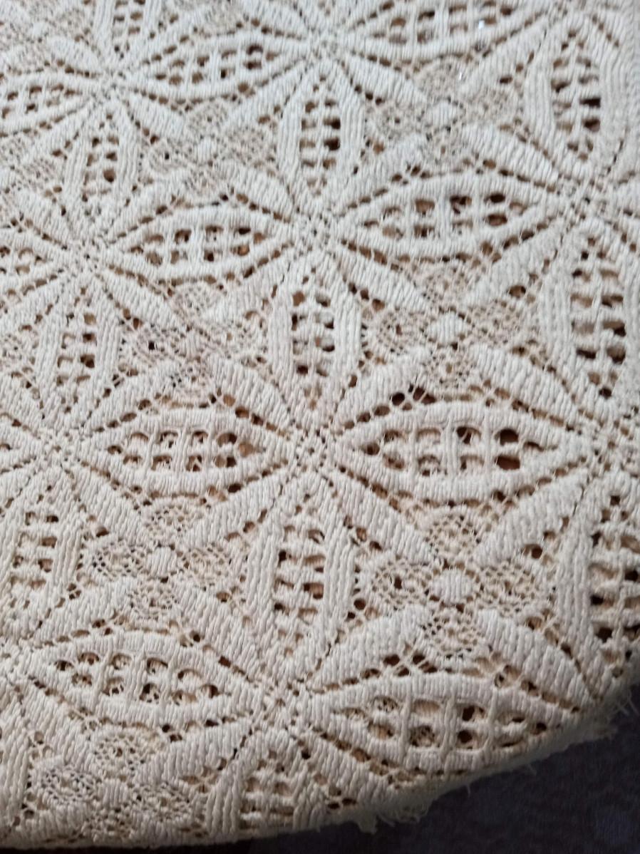 THIS BEAUTIFUL BEDSPREAD WAS HAND CROCHETED BY OUR CLIENTS GRANDMOTHER. THERE ARE 3 SMALL AREAS SEEN THAT NEED MINOR REPAIR (SEE PICS) IT MEASURES APPROX 80" X 52"