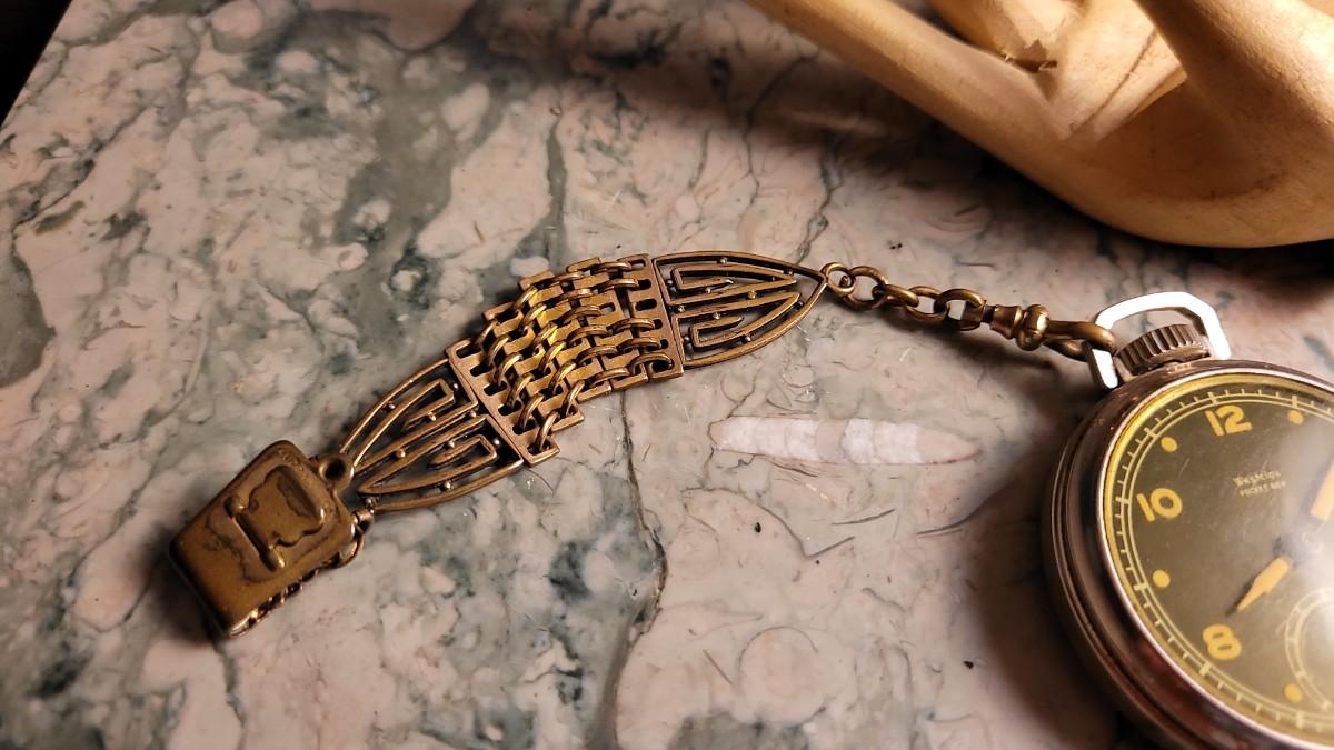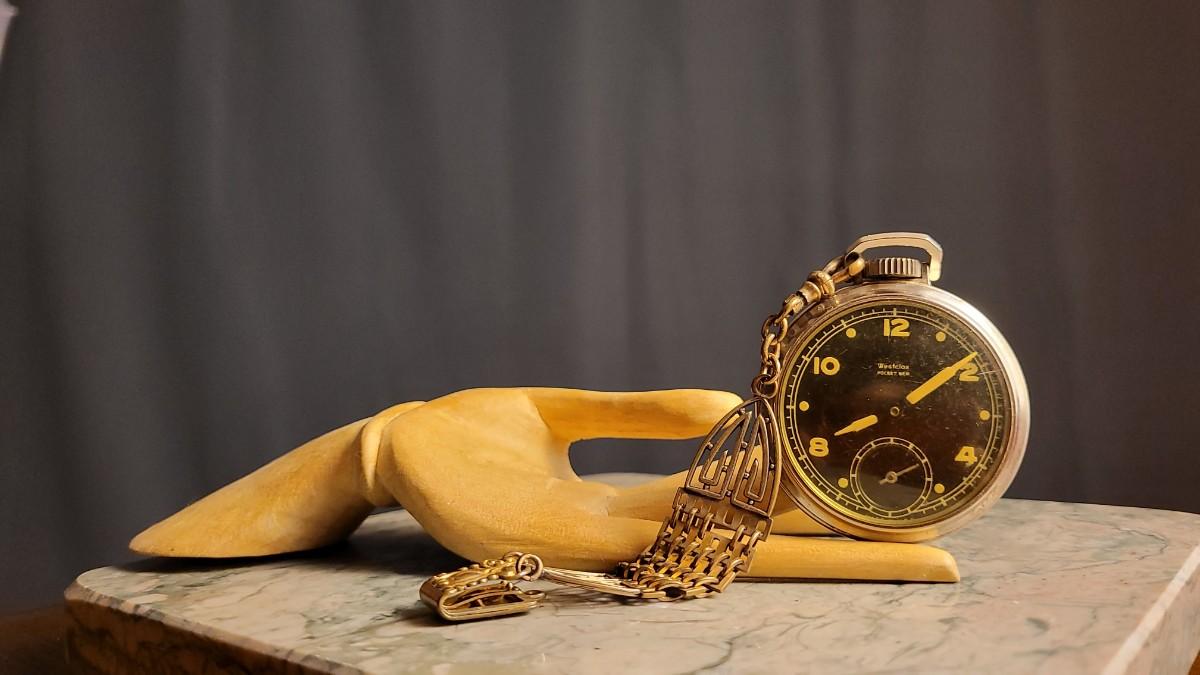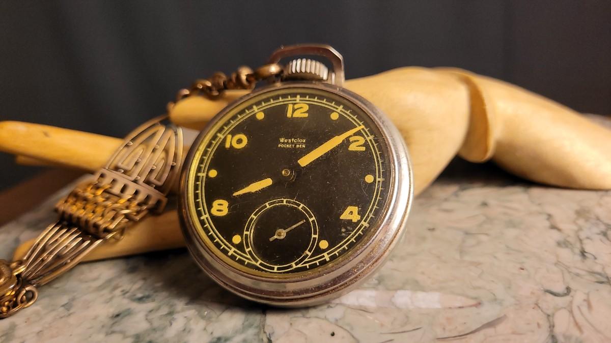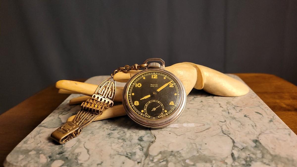 Lot 52: Vintage WESTCLOX Pocket Ben Watch w/ Fancy Art Deco Fob