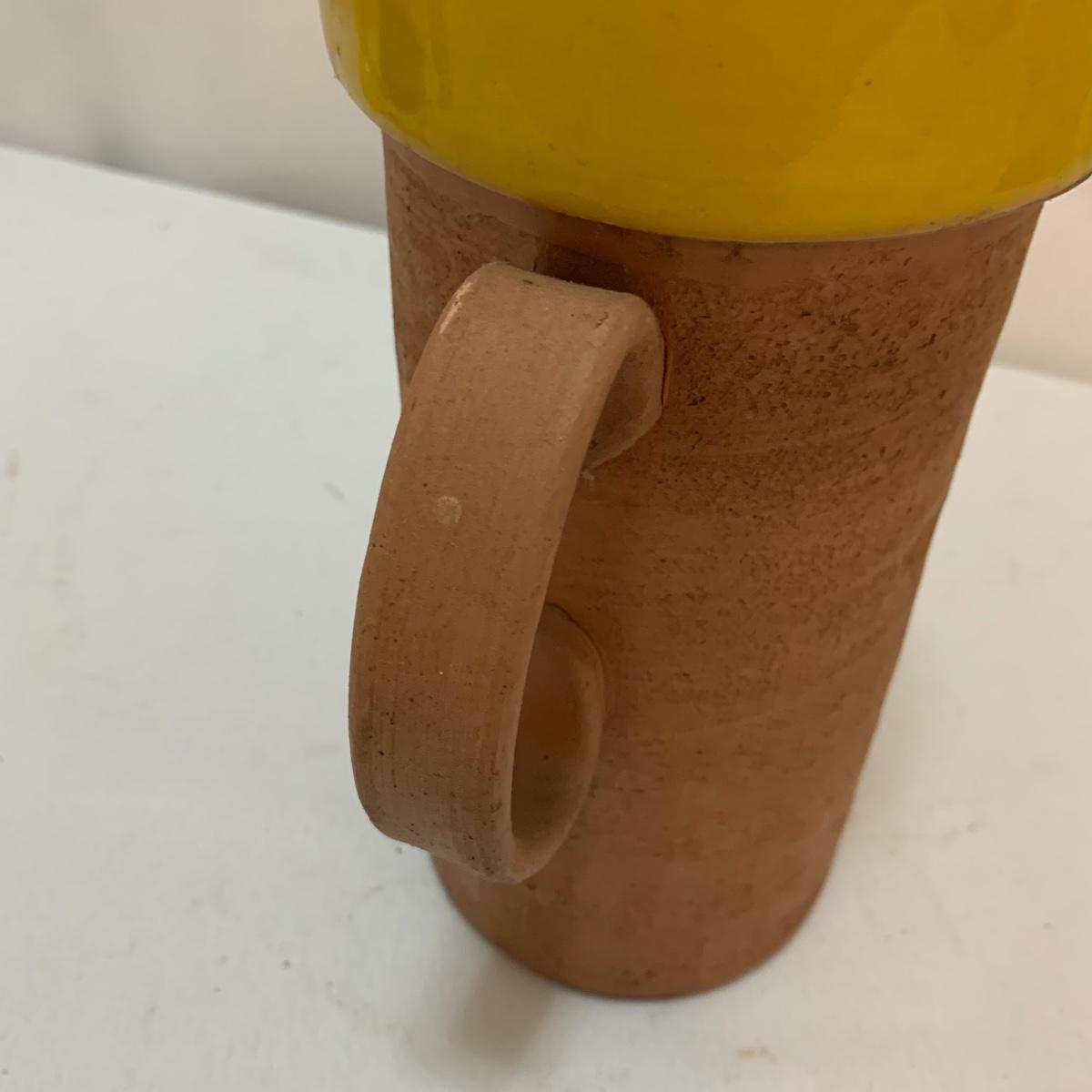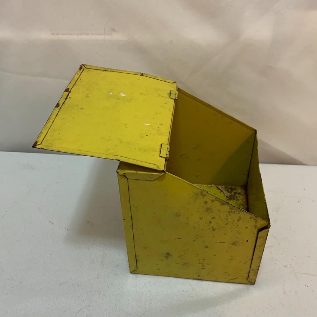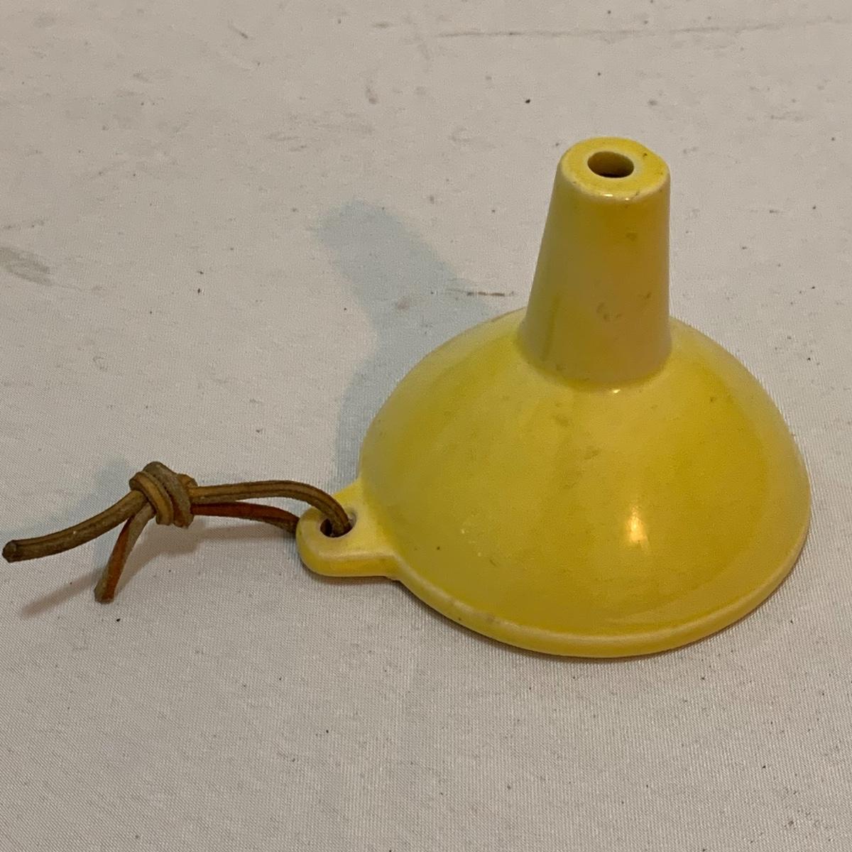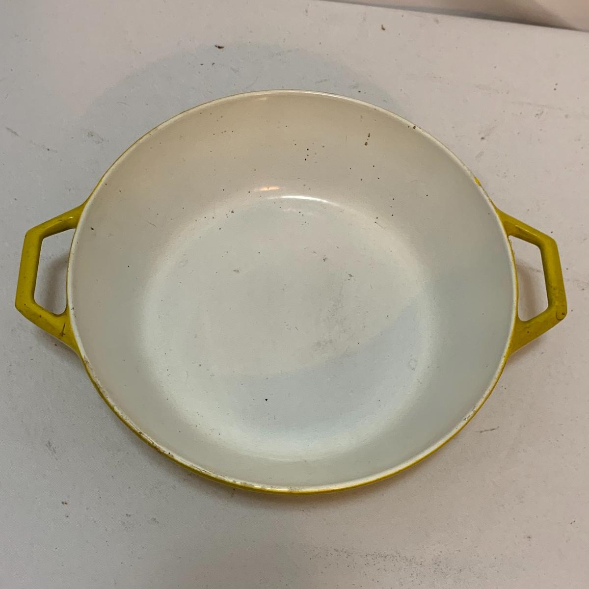 This lot is full of sunny yellow kitchen items to brighten up your kitchen. There is a unique ceramic pitcher from Portofino, Italy that is a little over 10” tall with a bright yellow glazed top and spout. The spout has a small chip and thre glaze is chipped off. The inside of the pitcher is glazed. The metal box has a tilted hinged lid & a handle. Also included is a 10” yellow ceramic cooking dish from Denmark, some yellow metal jars with wooden lids that nest; the third one is stuck inside the second one so that might take a bit of work to get it out. There’s also a yellow hook with a screw and a yellow funnel with a strap. And one non yellow item that is a unique Copco burner. Shipping available.