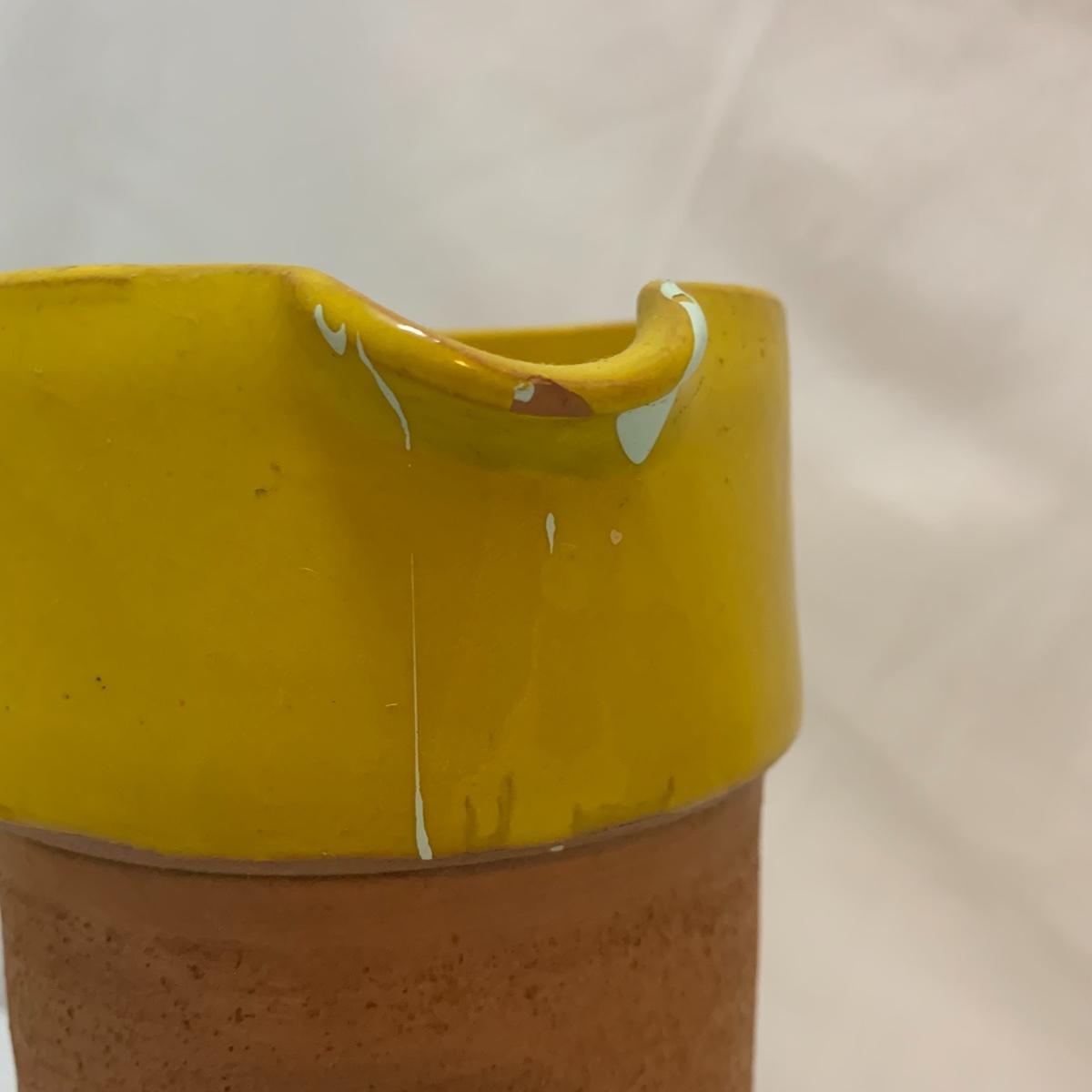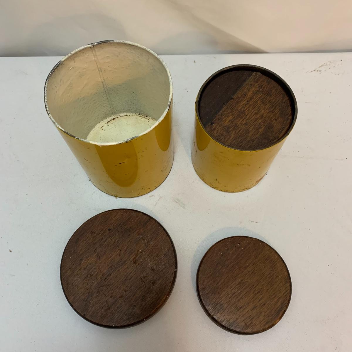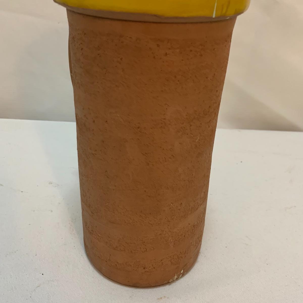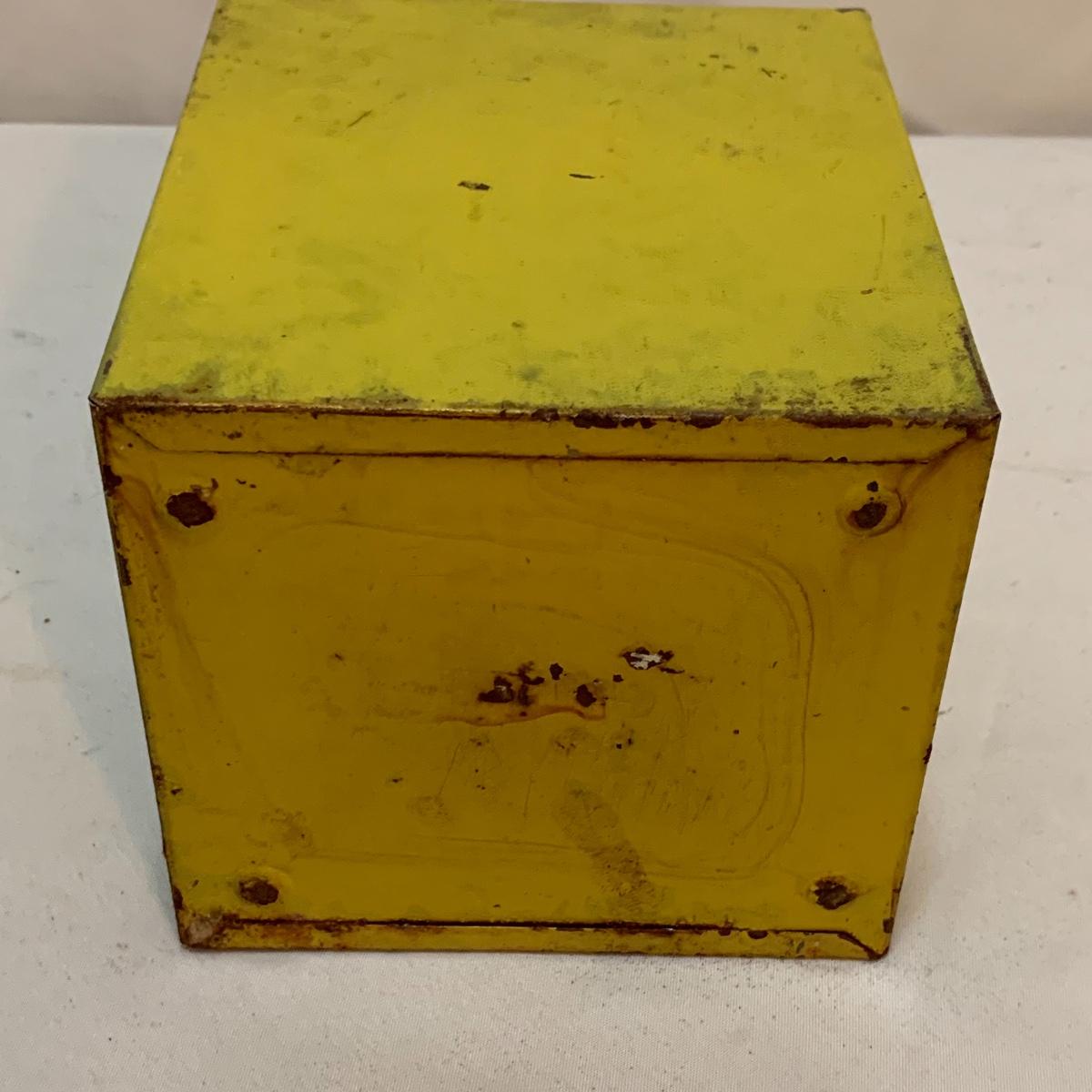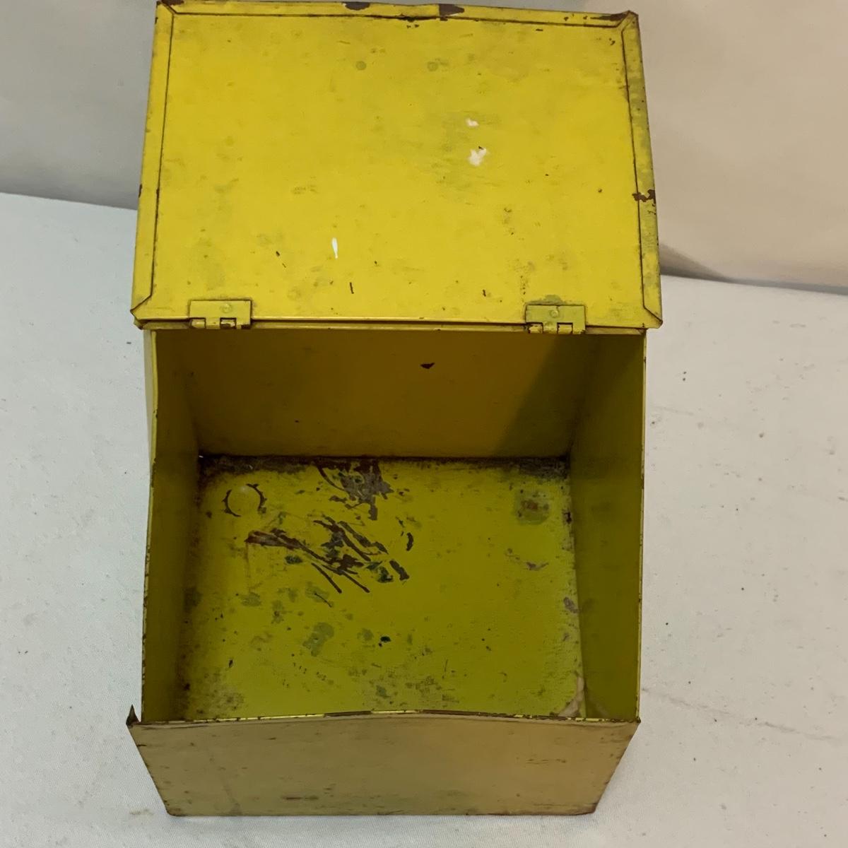 This lot is full of sunny yellow kitchen items to brighten up your kitchen. There is a unique ceramic pitcher from Portofino, Italy that is a little over 10” tall with a bright yellow glazed top and spout. The spout has a small chip and thre glaze is chipped off. The inside of the pitcher is glazed. The metal box has a tilted hinged lid & a handle. Also included is a 10” yellow ceramic cooking dish from Denmark, some yellow metal jars with wooden lids that nest; the third one is stuck inside the second one so that might take a bit of work to get it out. There’s also a yellow hook with a screw and a yellow funnel with a strap. And one non yellow item that is a unique Copco burner. Shipping available.
