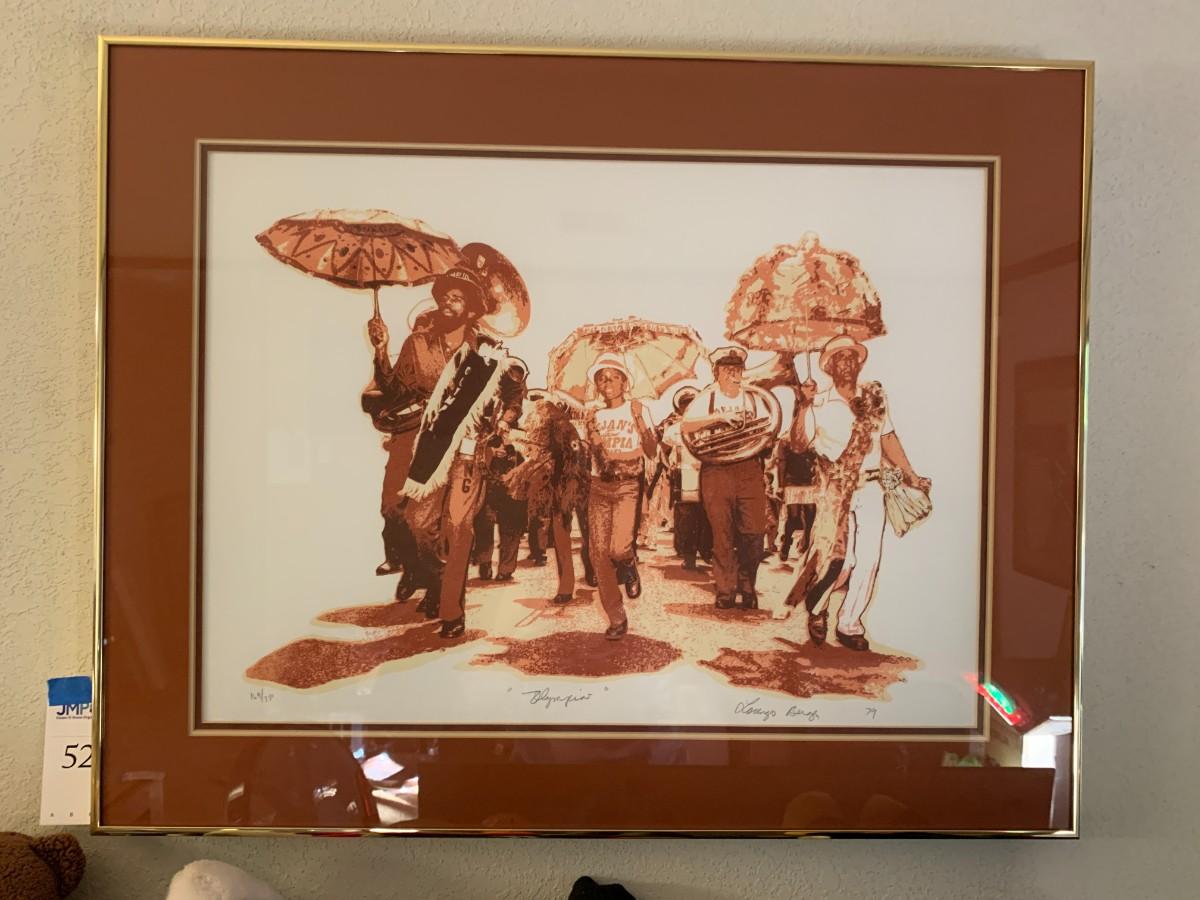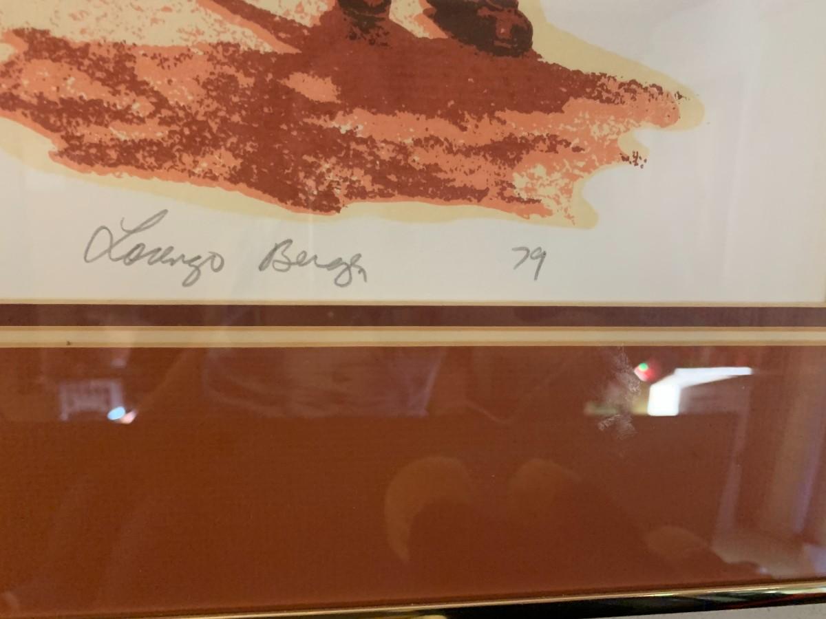 Signed and numbered in gold frame. African American artist Lorenzo Bergen. Edition 169/750. Approx 31"W x 24.5"H