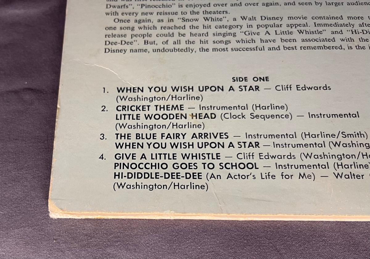 LOT 52: WALT DISNEY'S PINOCCHIO - 1959 VINYL