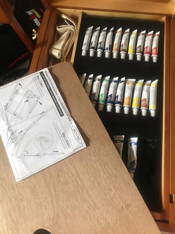 Lot 52: Wooden Art Easel w/paint, palette and brushes