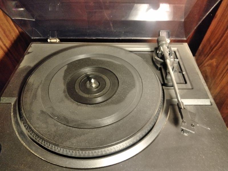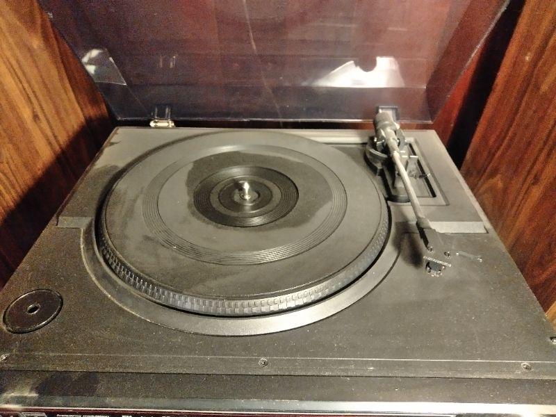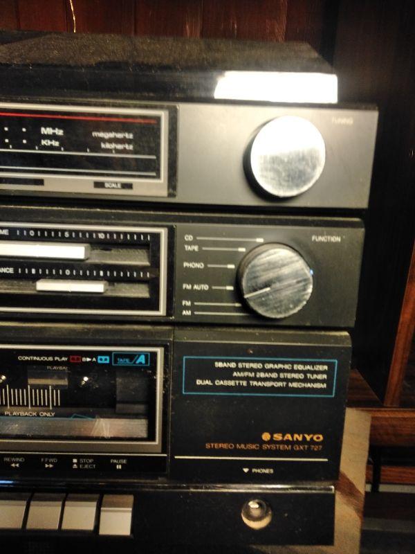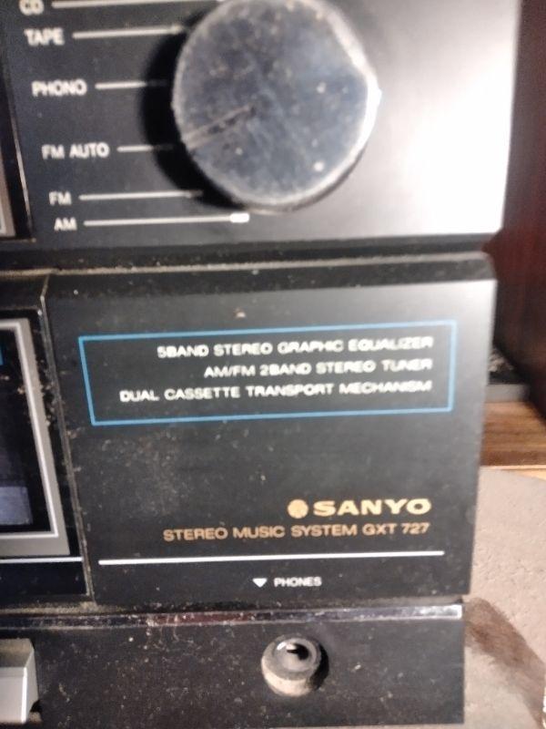 SANYO GXT 727 AM / FM STEREO, CASSETTE DECK, TURNTABLE STEREO SYSTEM WITH SANYO SPEAKERS.