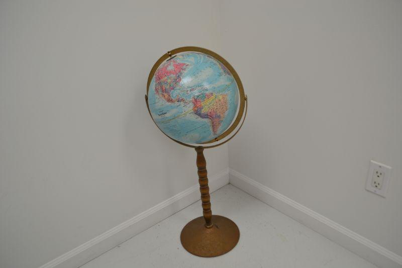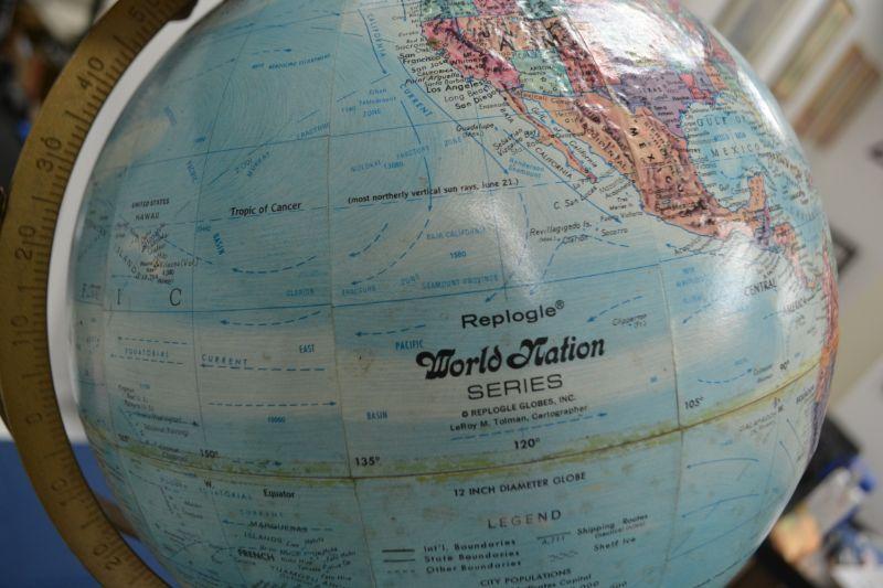 REPLOGLE WORLD NATION SERIES FLOOR STAND GLOBE. SURFACE RUST ON BASE
