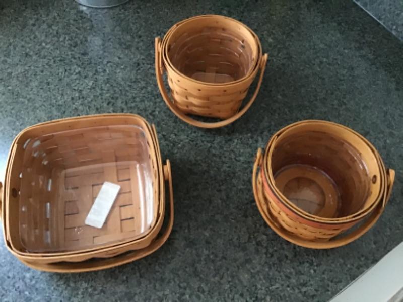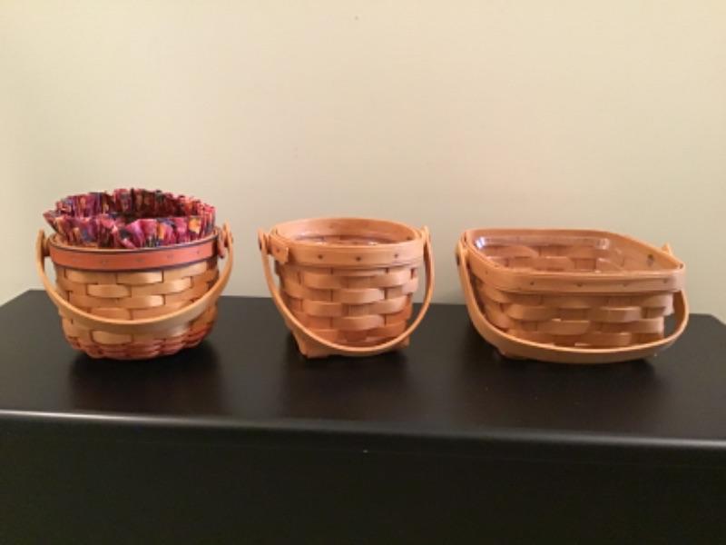 3 Small SIGNED Longaberger Baskets, all have handles and plastic liners