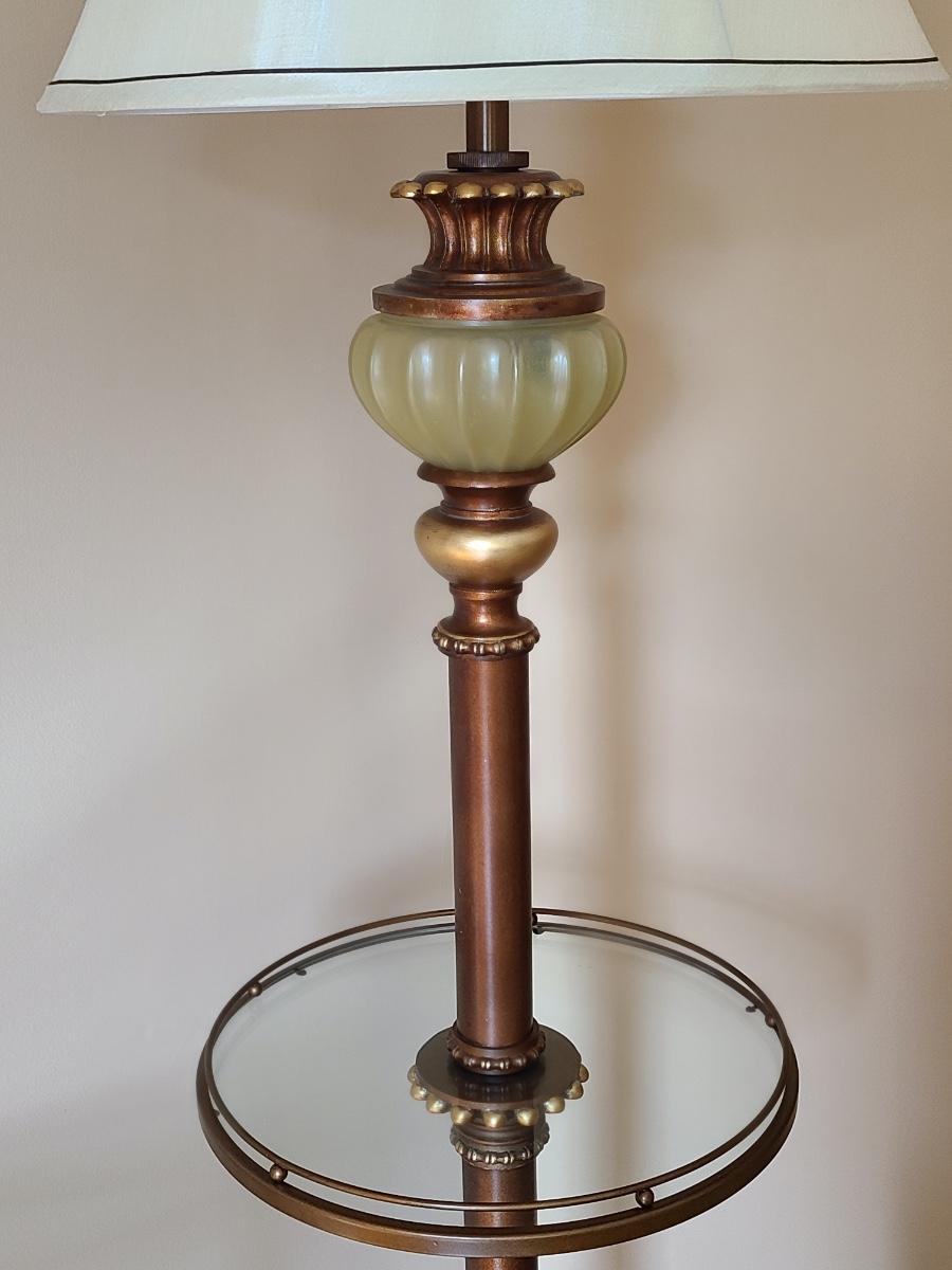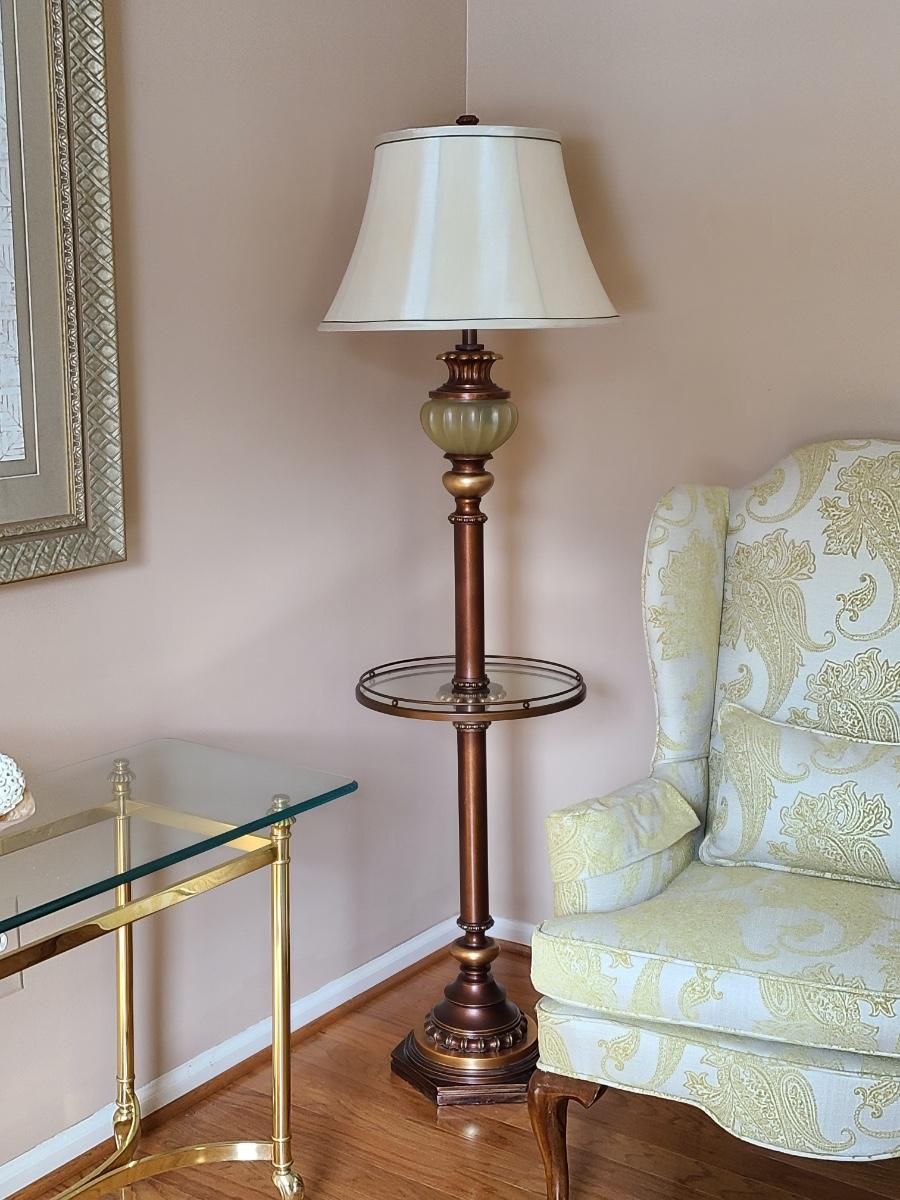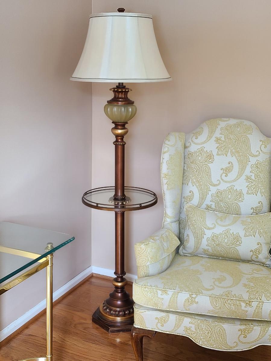 This lot is for the floor lamp only. This is a lovely floor lamp that has a piece that looks like jade (faux), and bronze in color. This is perfect for any room of the home and works. Please see all pictures as they are the best representation of the items. The pictures show condition, measurements if taken, and what is included in the lot. Due to the large amount that we photograph and the time frame, we are not always able to take measurements. All items unless noted, are pre-owned and have been used. If you purchased furniture, you must bring help. We do not allow one person to carry large furniture out on their own. Bring help, tools and a truck for the safety of our client’s homes, and your personal safety. Any damages that result to the property including walls, and floors due to moving of the furniture will be charged to the buyer. Company policy. Thank you.