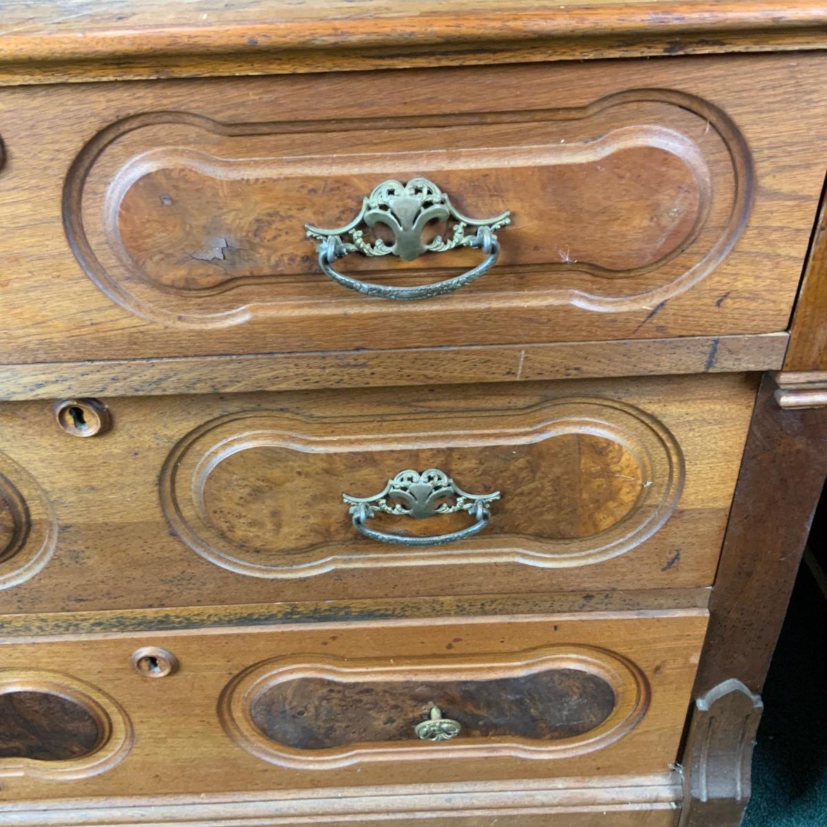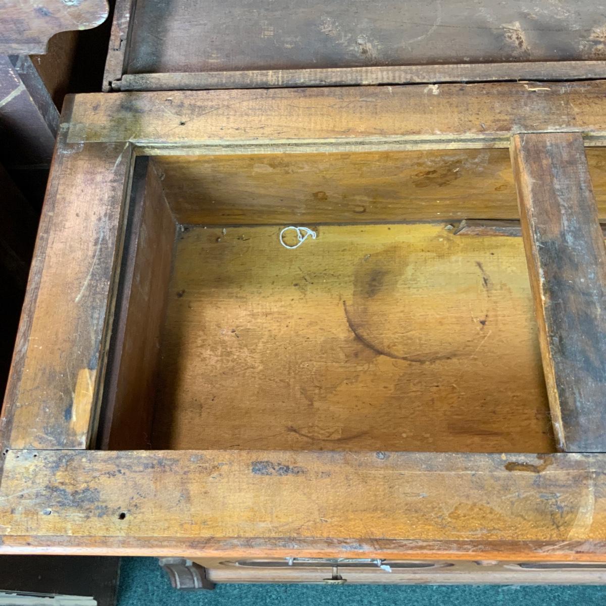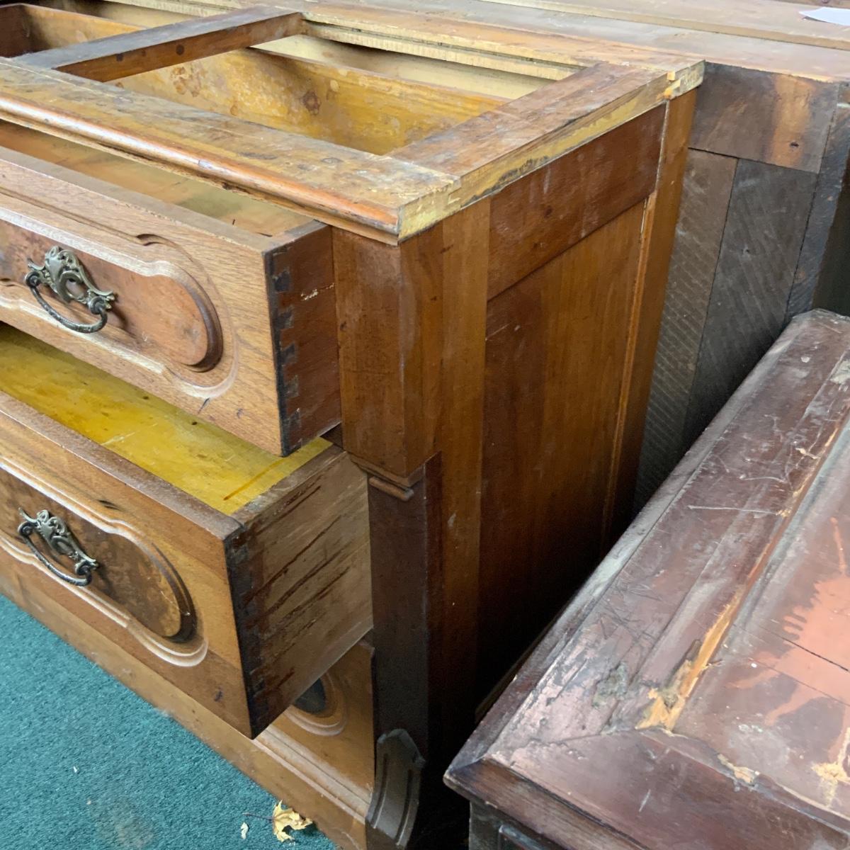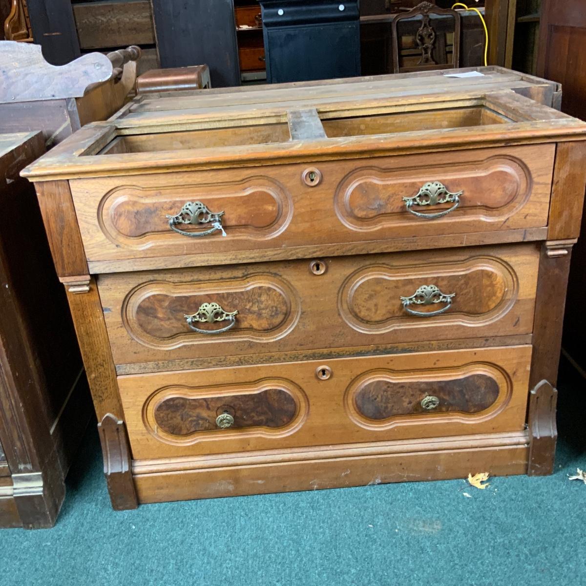 Three drawer commode. Needs top. //::\\ Please see photos for details and condition. No attempt has been made to hide any imperfections. All items listed in this auction are warehouse items, and need to be cleaned. A majority of the items need restoration as well. All items are sold AS IS and WITHOUT GUARANTEE. If you are uncertain about an item, DO NOT BID. Due to the nature of this online auction in-person inspection is HIGHLY recommended. All Sales are FINAL. Pick Up Times are FIRM. Please confirm with your own schedule that you can pick up in the scheduled times listed in the Terms and Conditions. Any questions please message the auctioneer. DO NOT Contact The Harp Gallery.