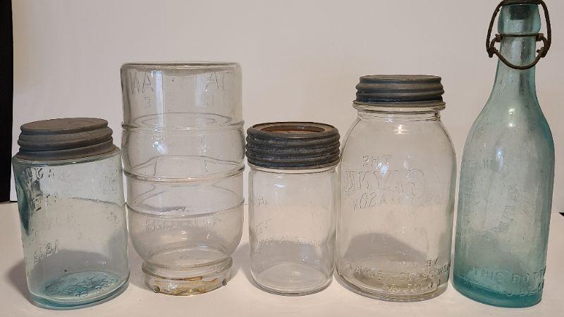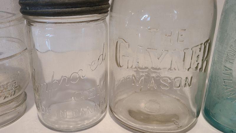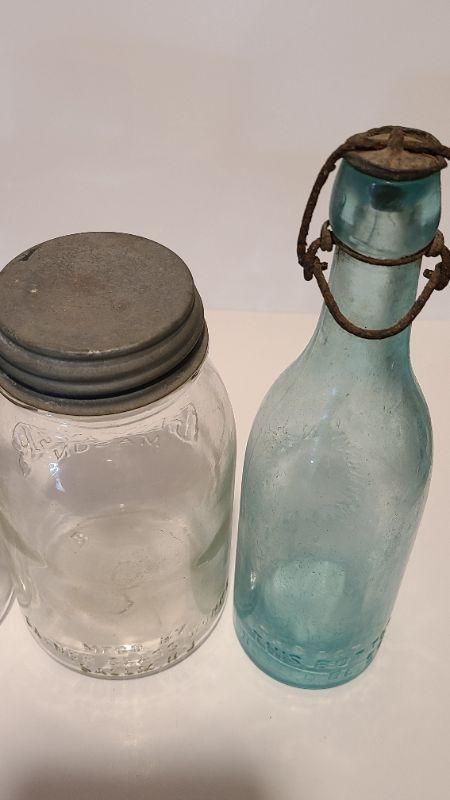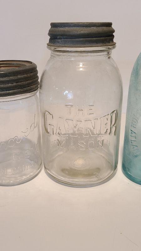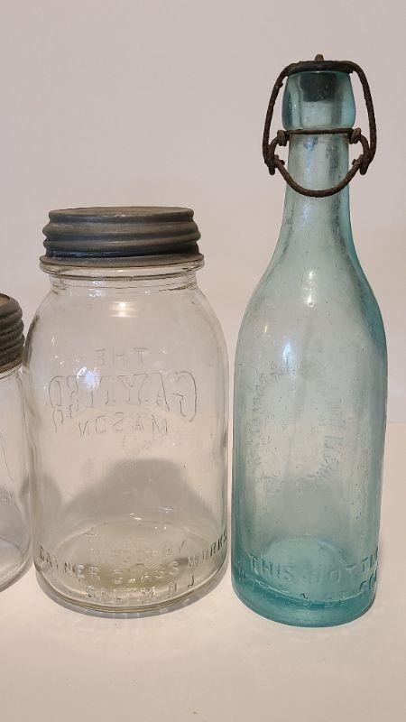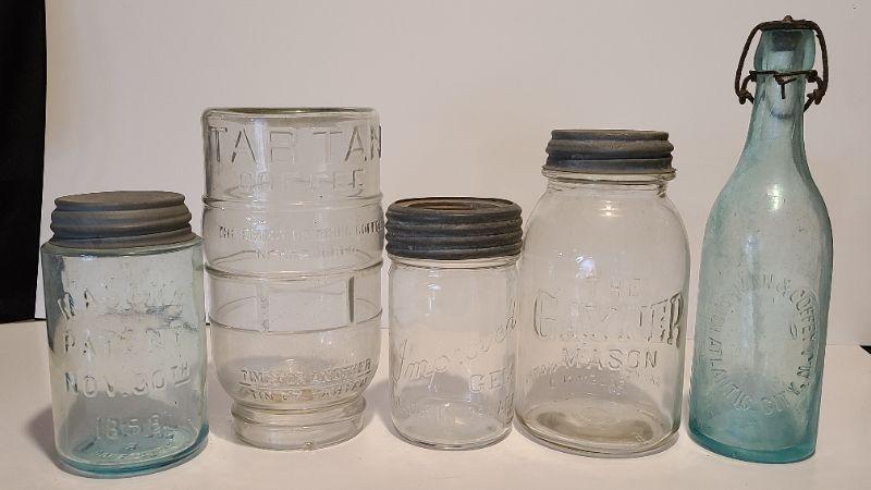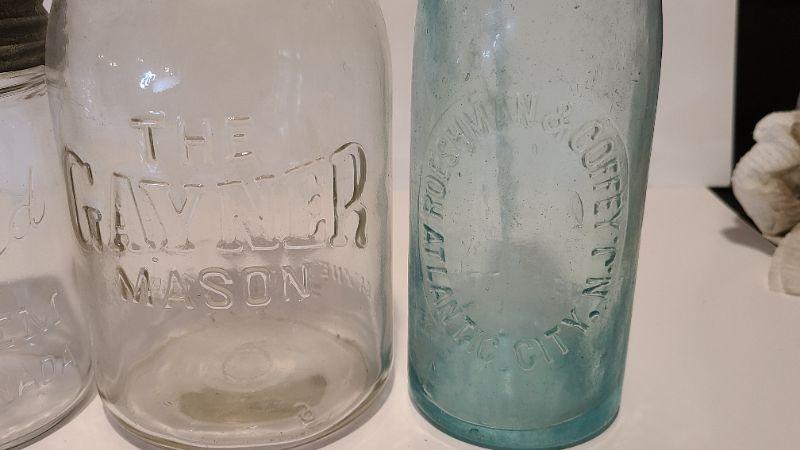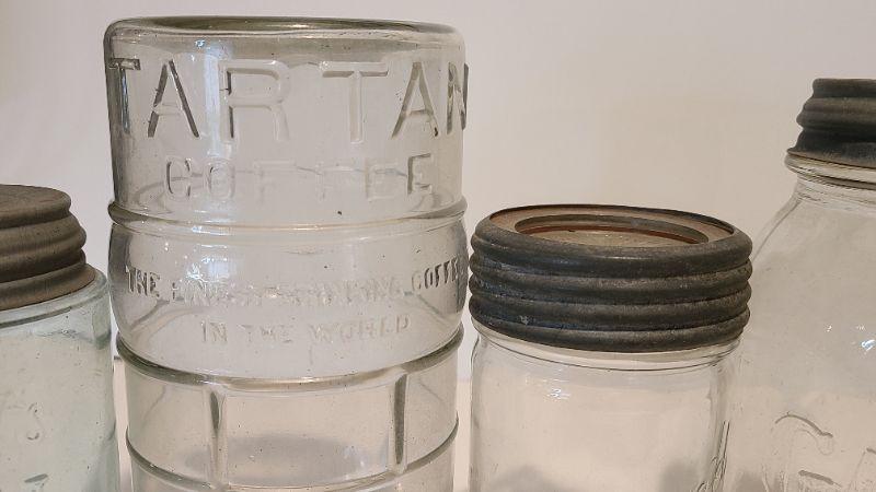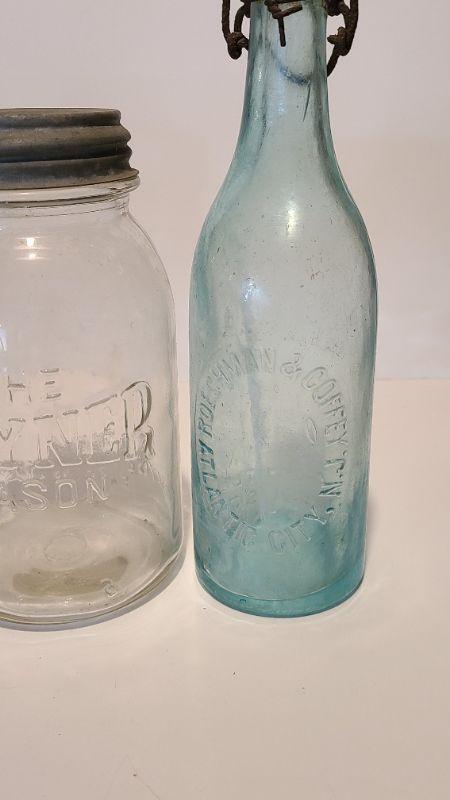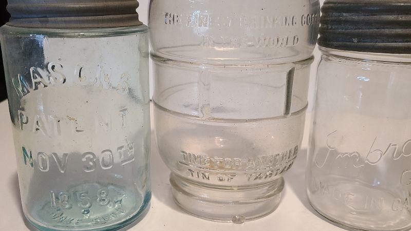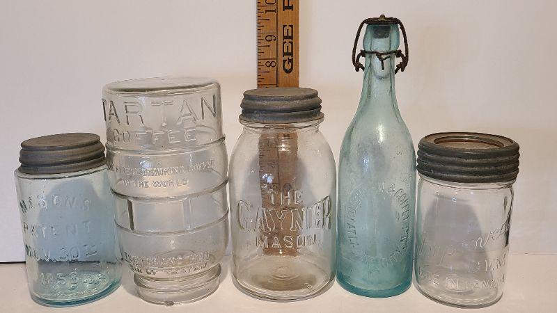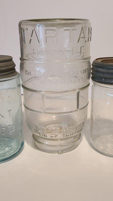 Lot 215: Tartan Coffee Jar, Gayner Mason, Improved Jar, and Roeshman/Coffey AC Soda Bottle