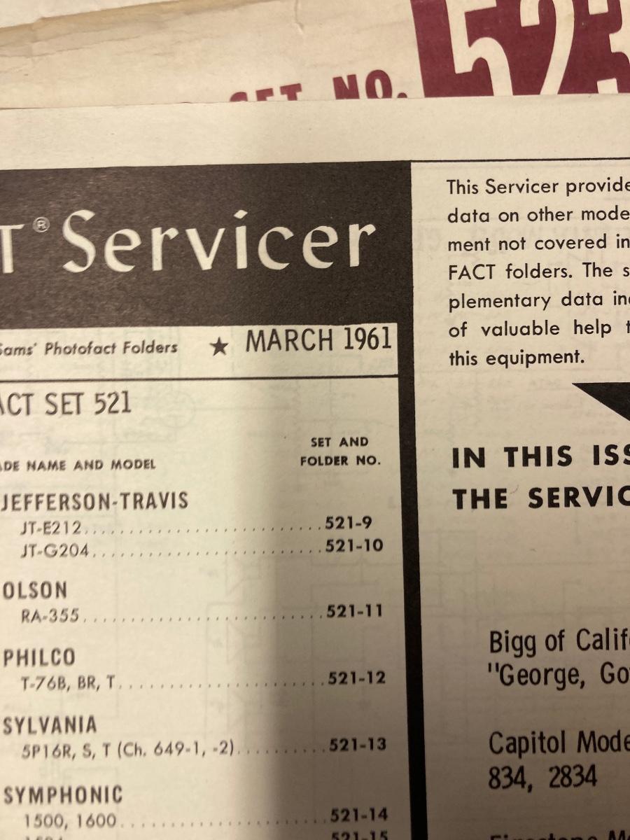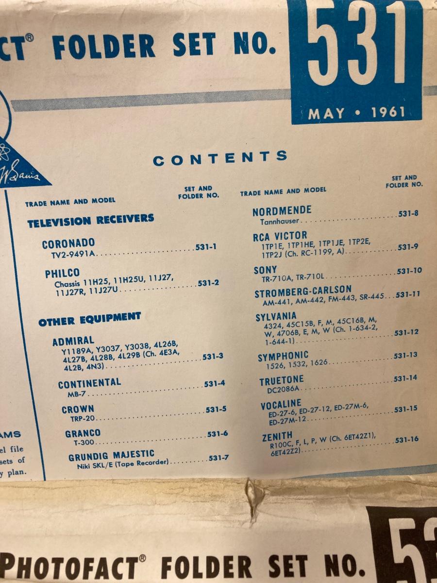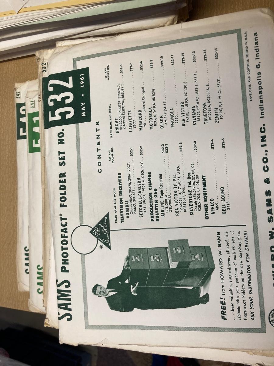 PHOTOFACT FOLDER SETS FOR SEVERAL DIFFERENT ELECTRONICS FROM THE 40’s, 50’s & 60’s