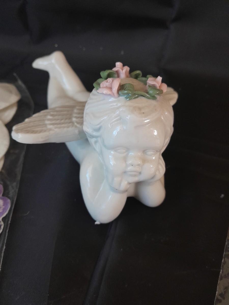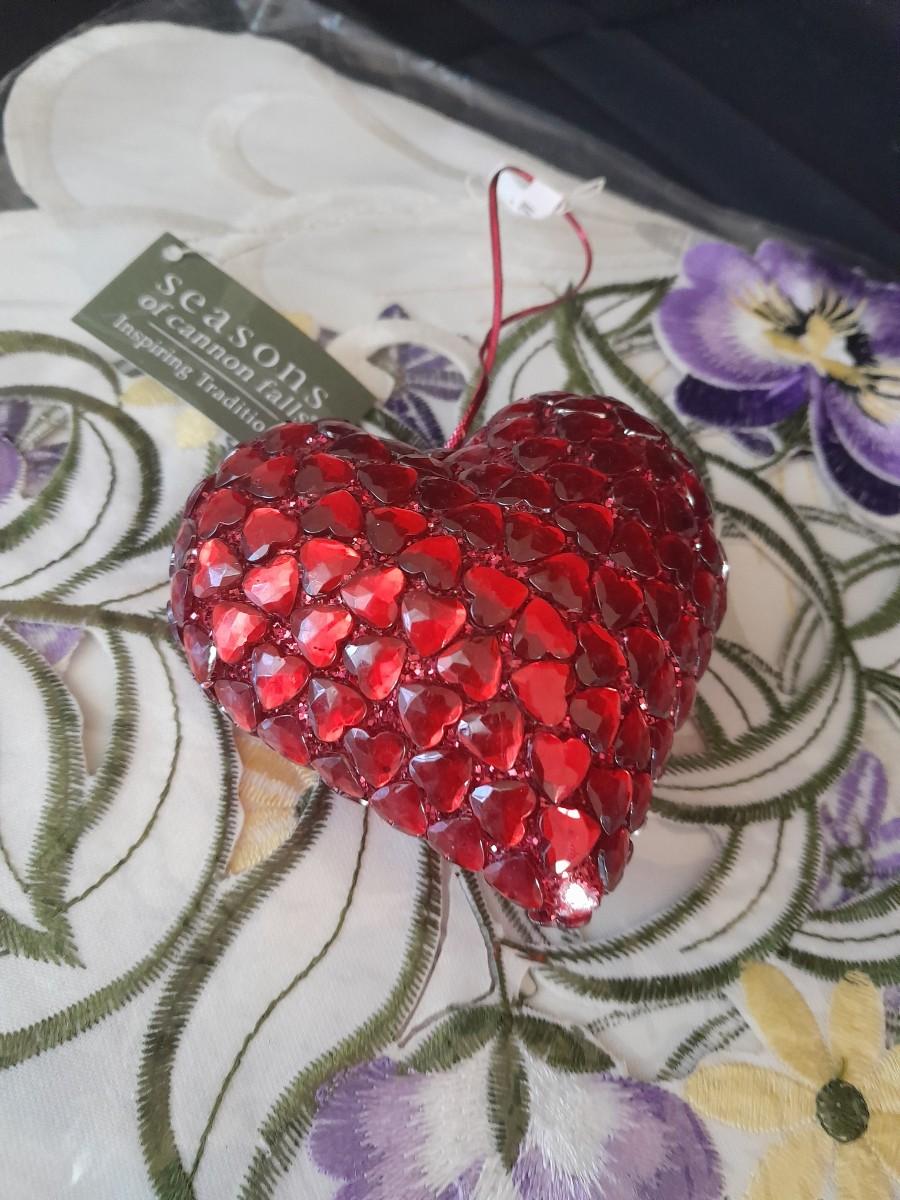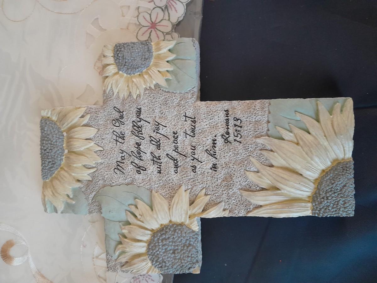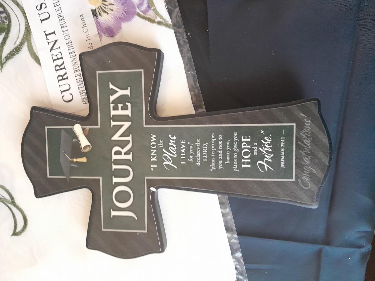 TWO CROSSES WITH SAYINGS, AN ANGEL, HEARTS, AND TWO TABLE RUNNERS
