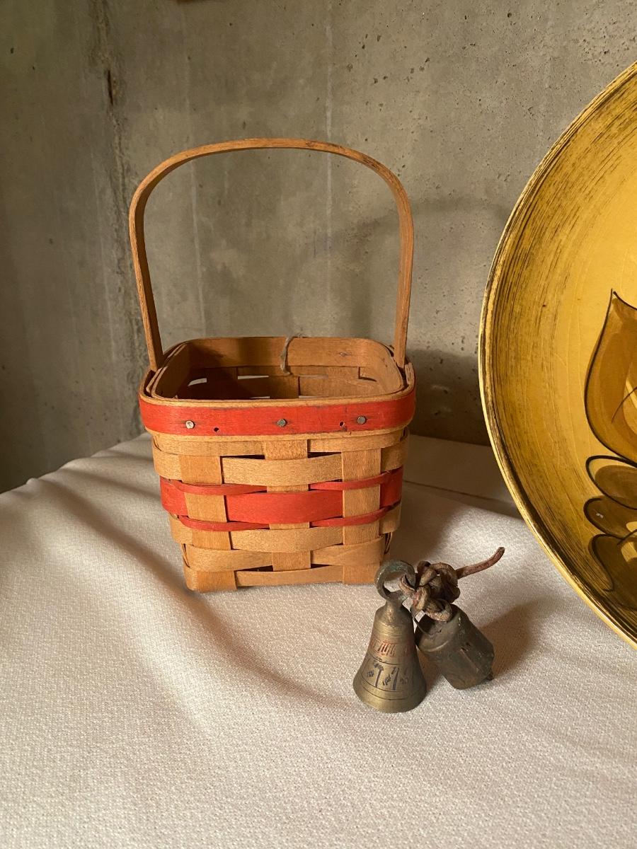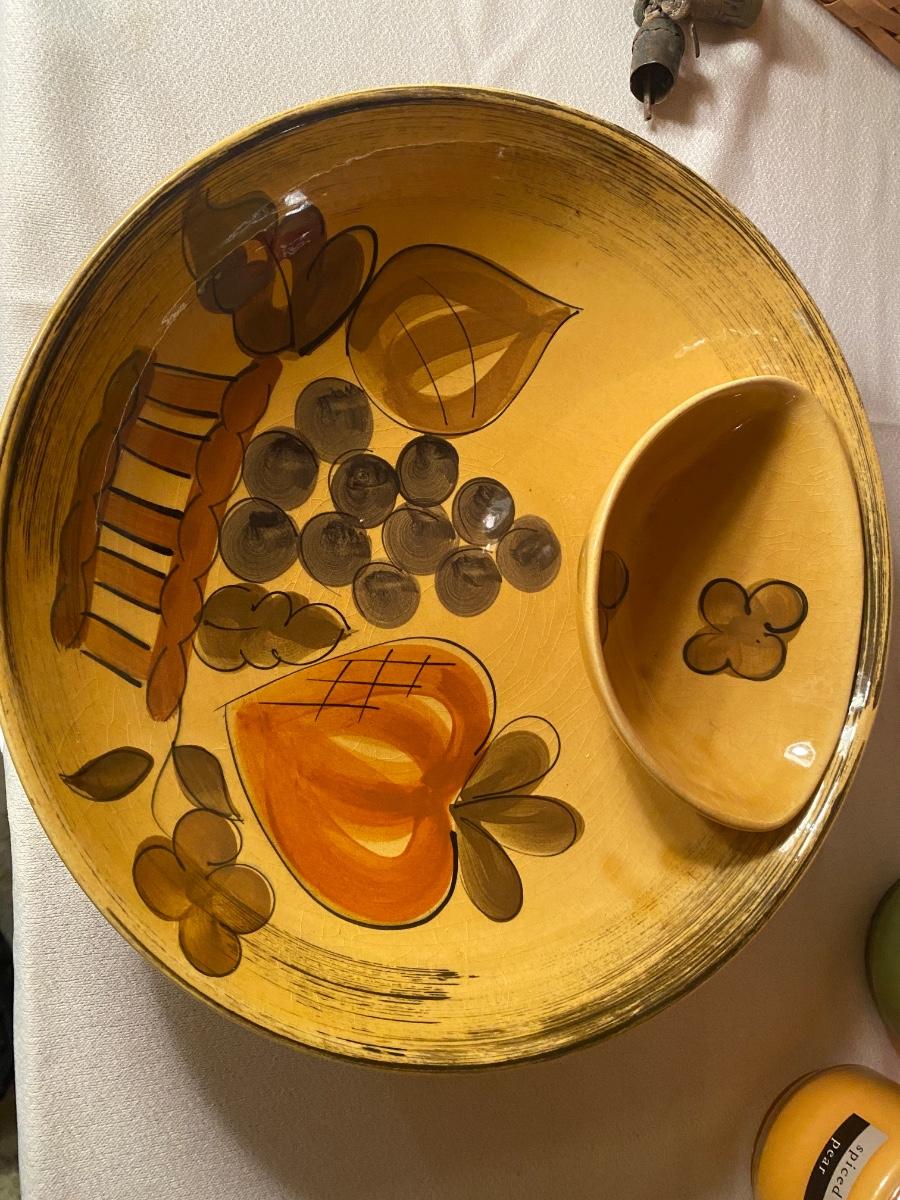 CHIP AND DIP DISH, SERVING TRAY, CANDLES IN JARS AND LONGABERGER BASKET