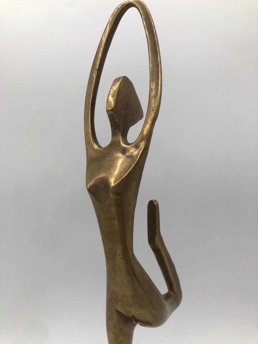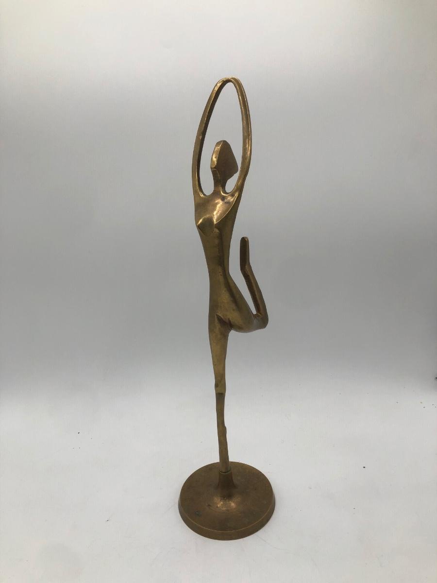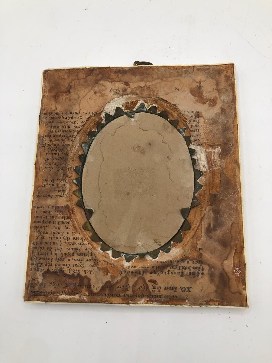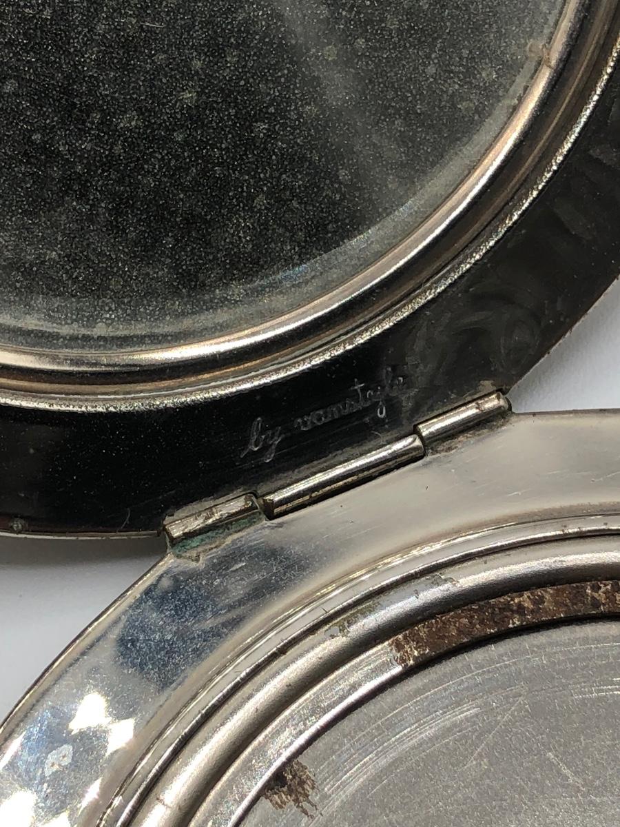 LOT 523K: Antique French Framed Enamel on Copper Miniature Portrait, Vintage Vanstyle Heron Compact, Pressed Flowers Glass Trinket Dish, Brass Abstract Ballerina Statue & Mirrored Wooden Box