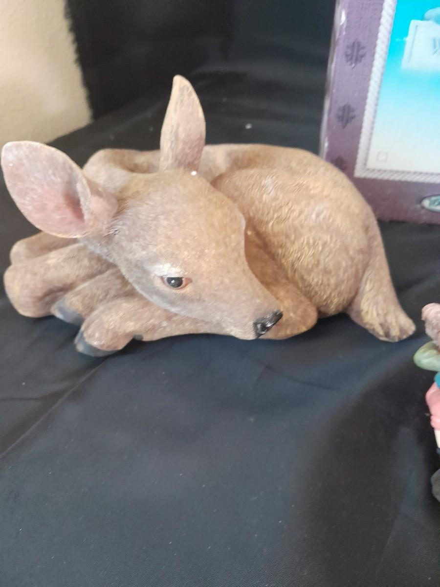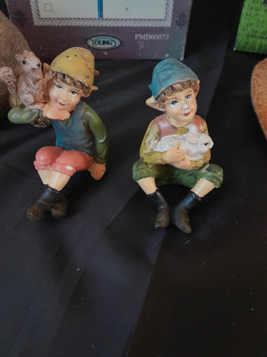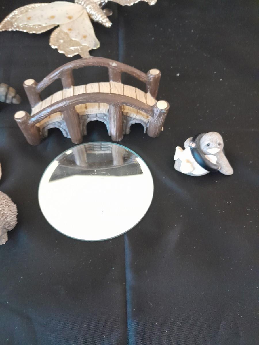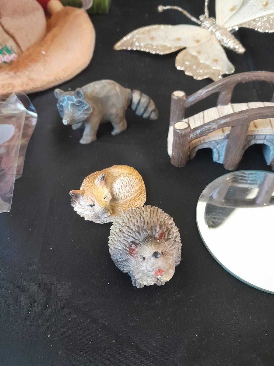 WOODLAND PLUSH FAIRY HOUSE, GARDEN STAKE, BUTTERFLY, AND A COLLECTION OF SMALL ANIMAL FIGURES