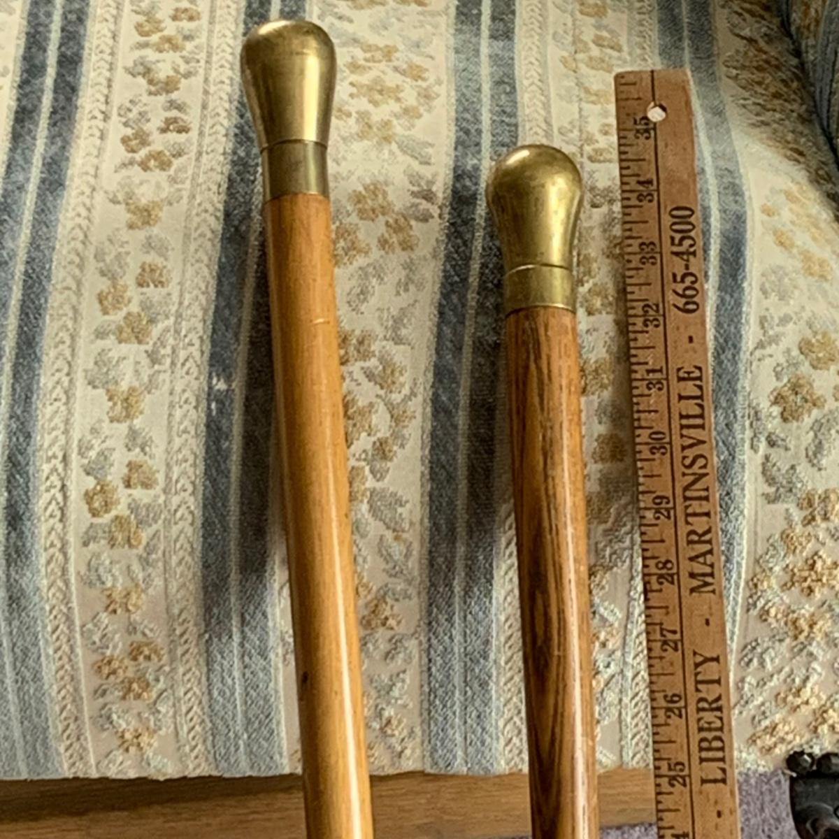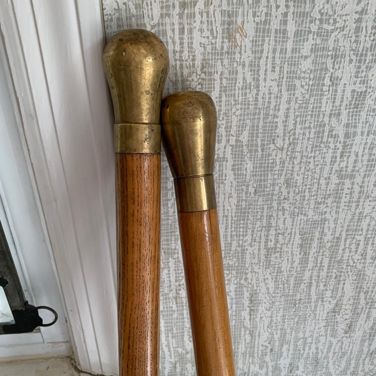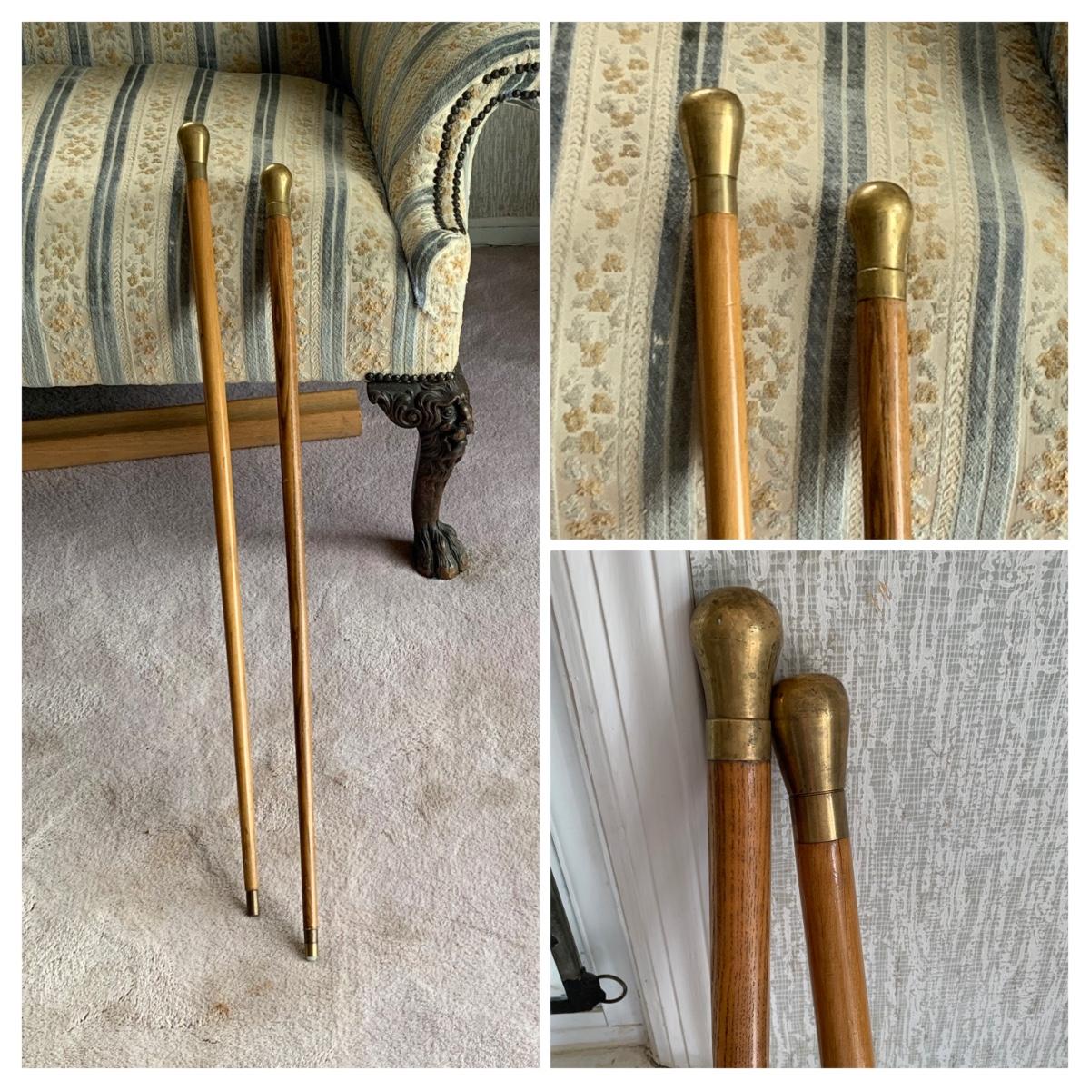Lot 525: Vintage Oak & Brass Walking Sticks
