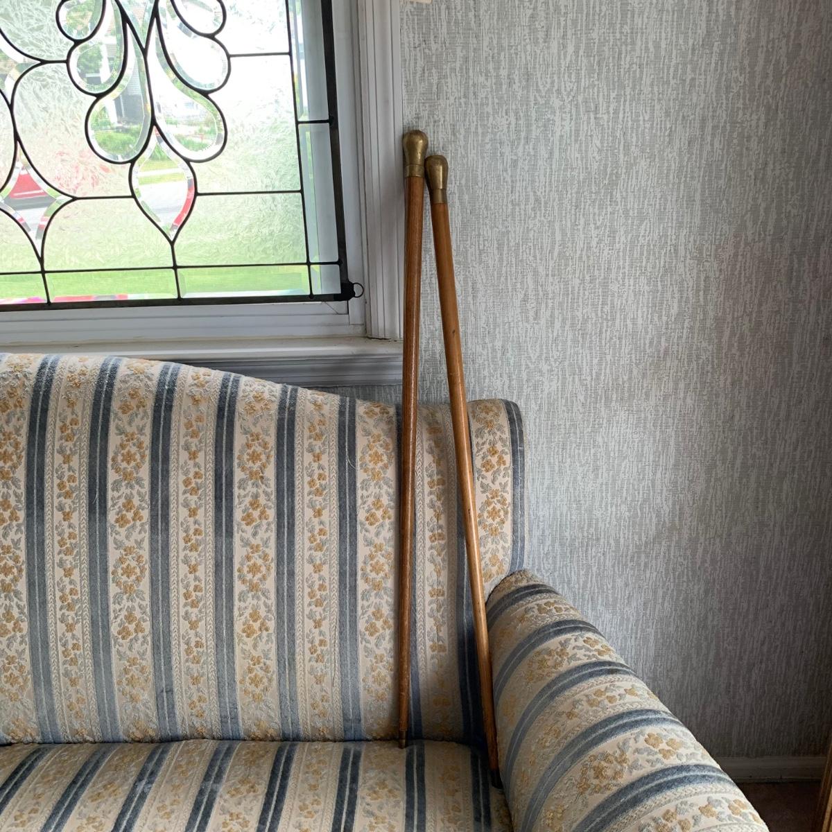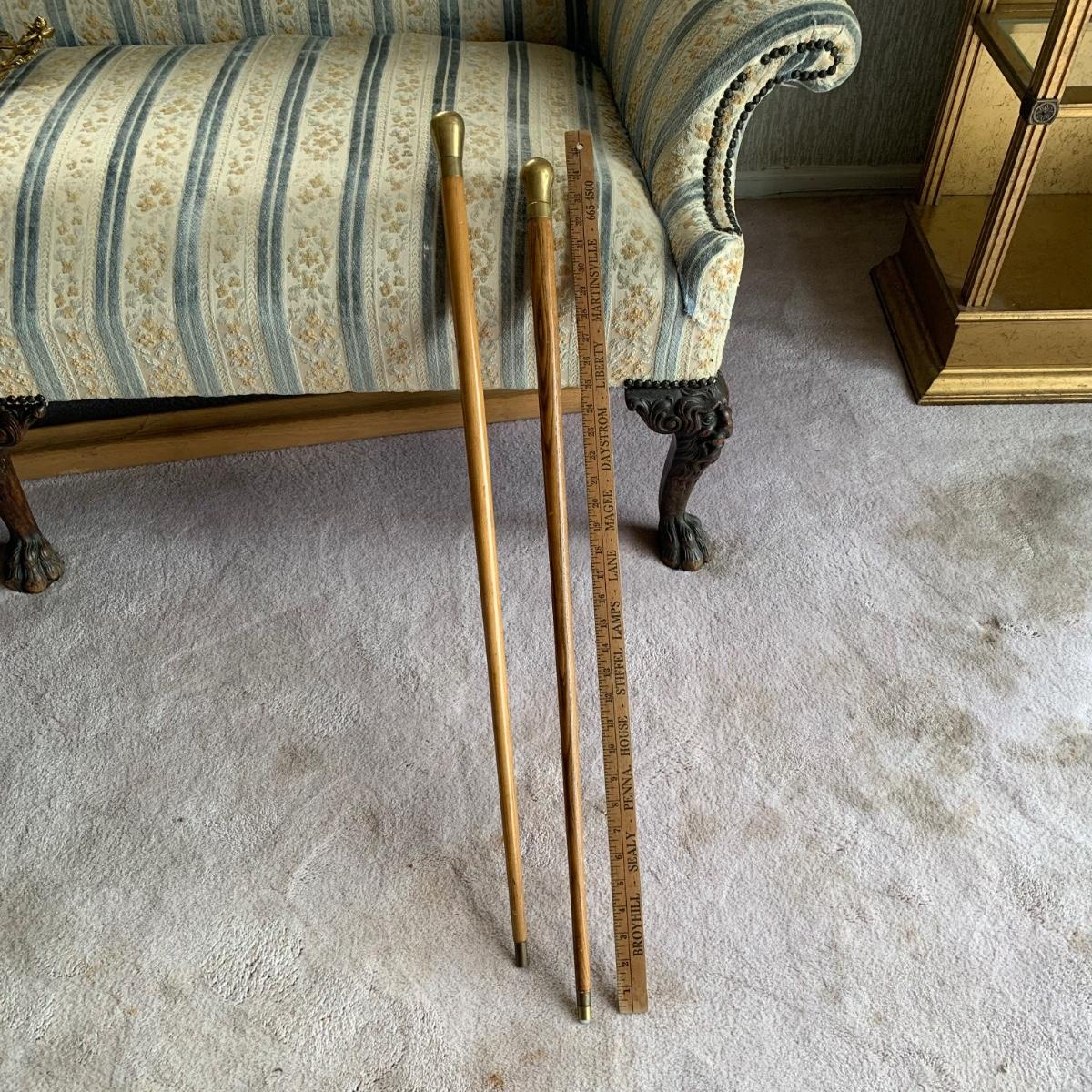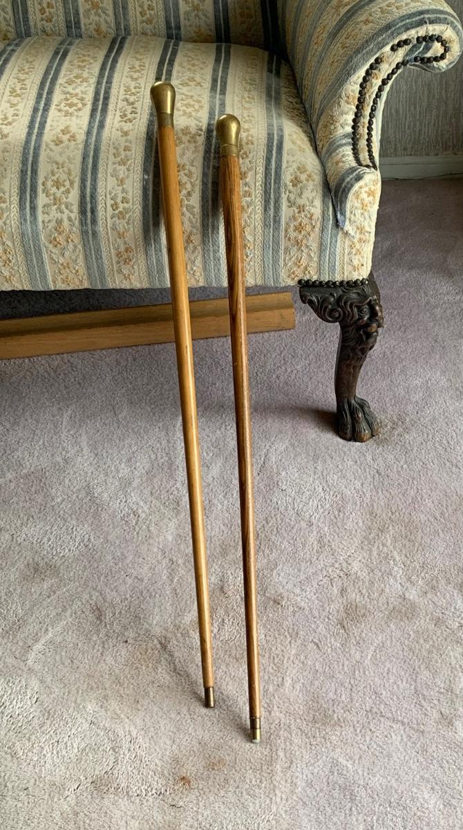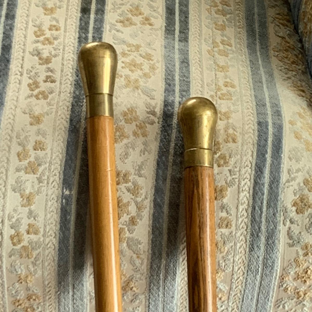 Lot 525: Vintage Oak & Brass Walking Sticks
