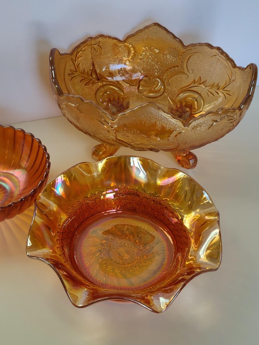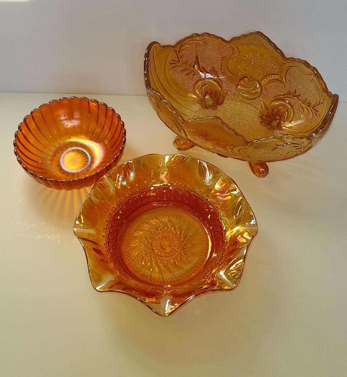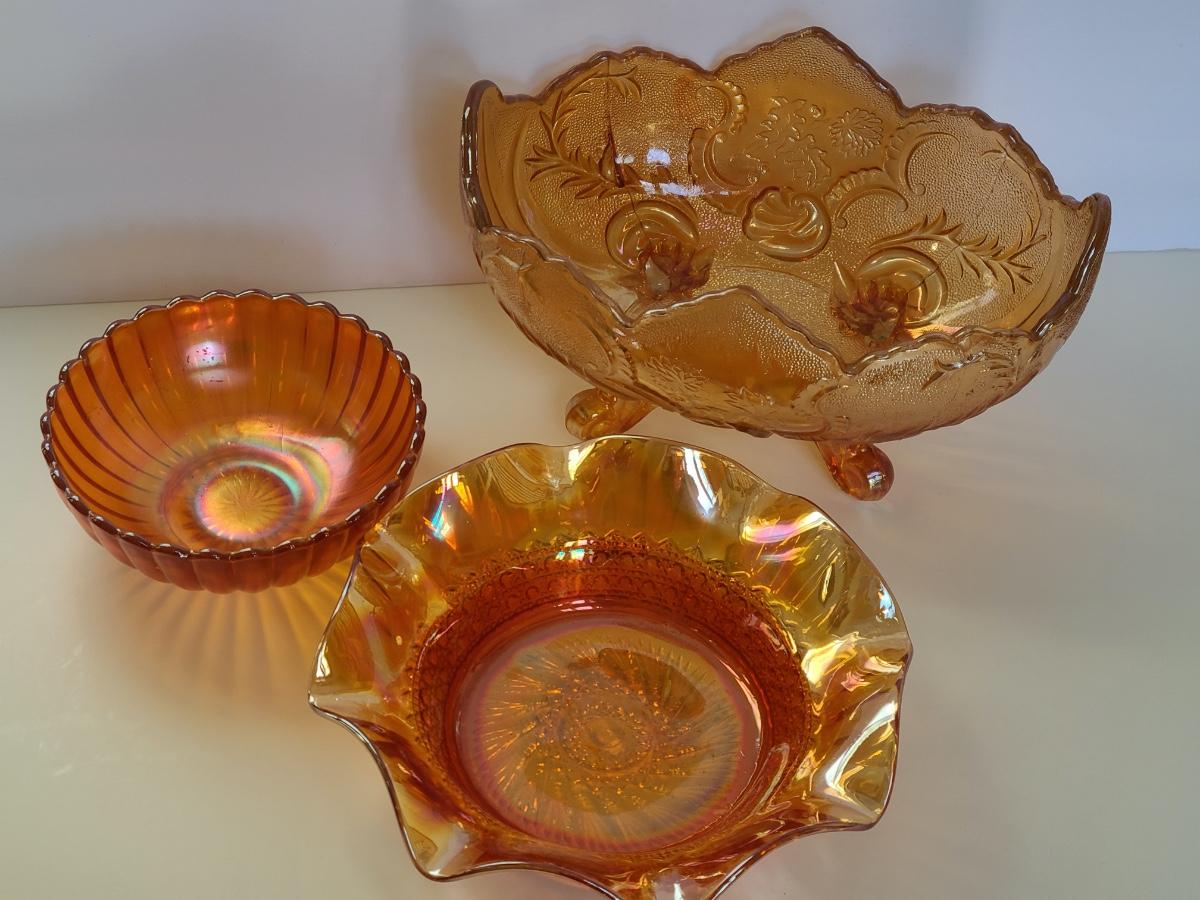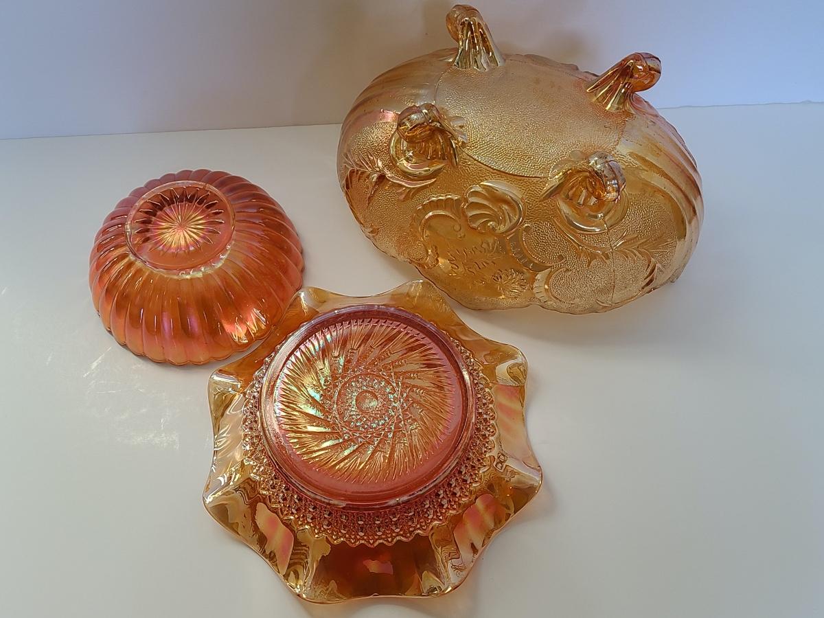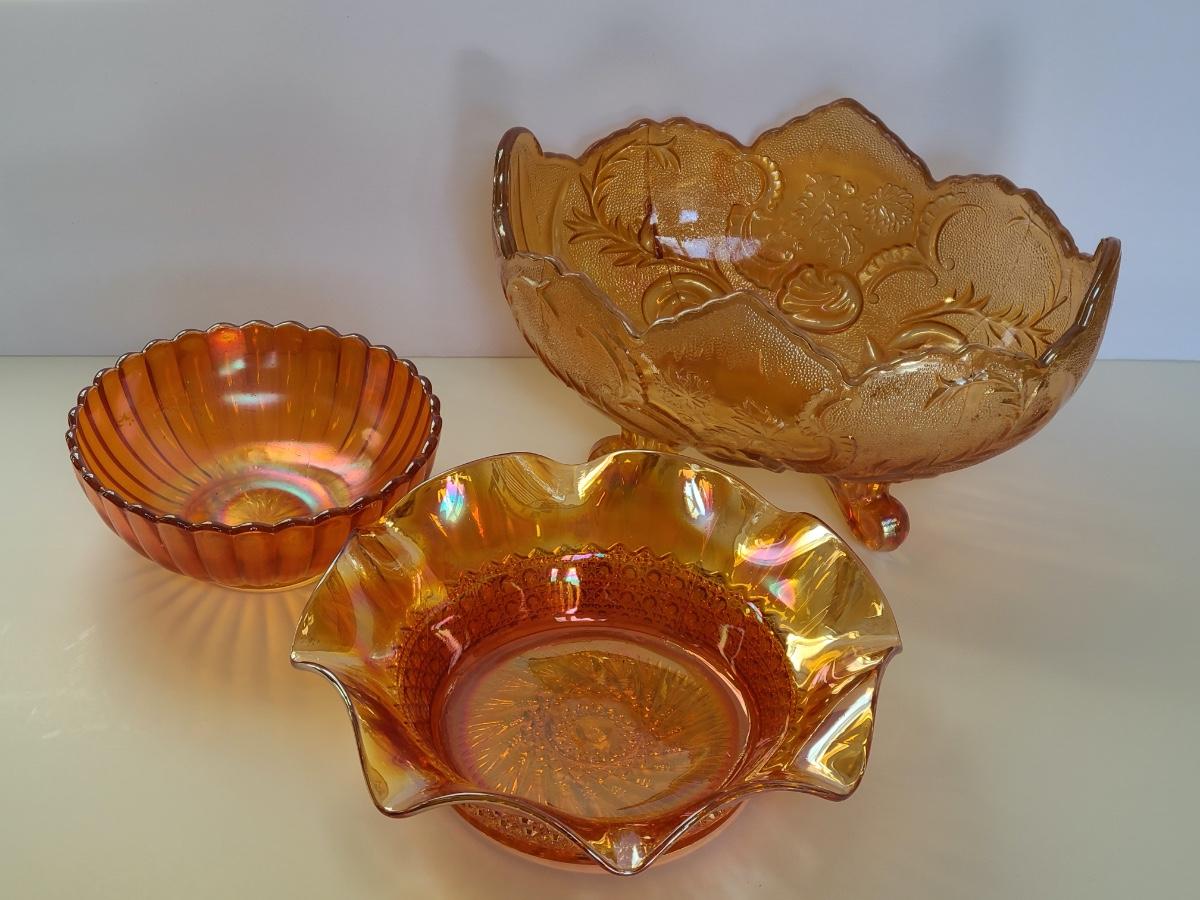 Lot 525: Carnival Glass Bowls and Footed Fruit/Candy Dish