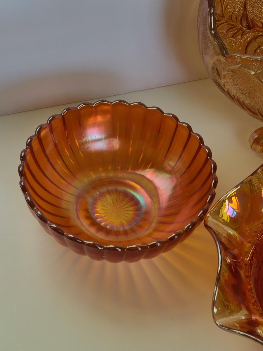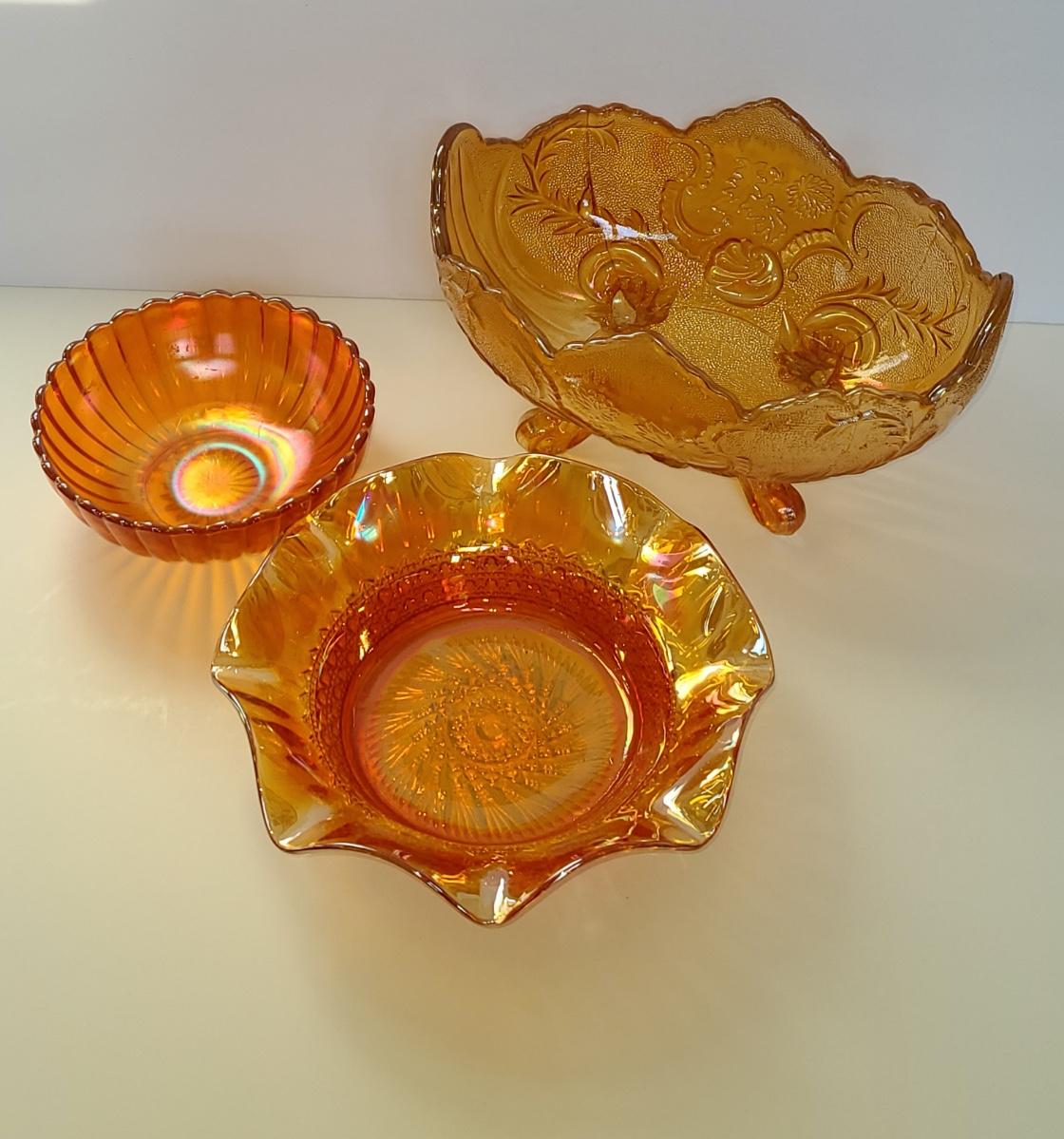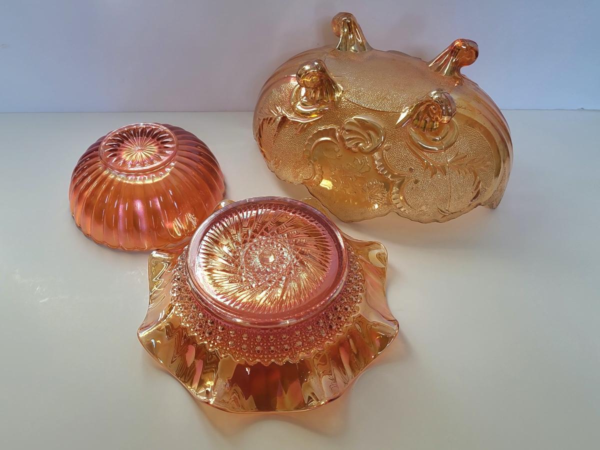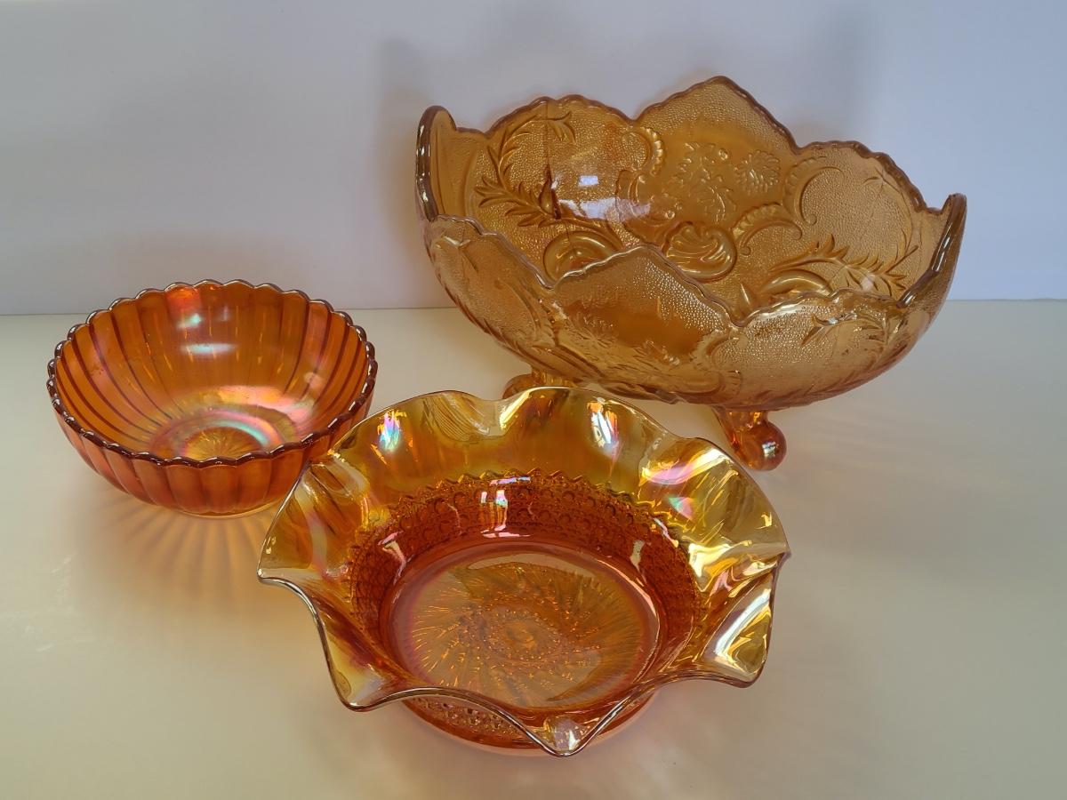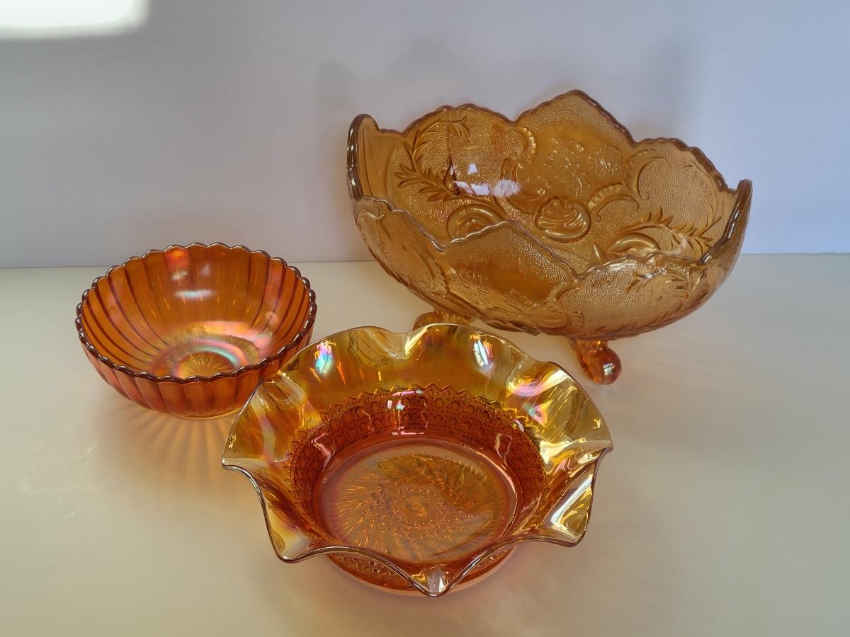 Lot 525: Carnival Glass Bowls and Footed Fruit/Candy Dish