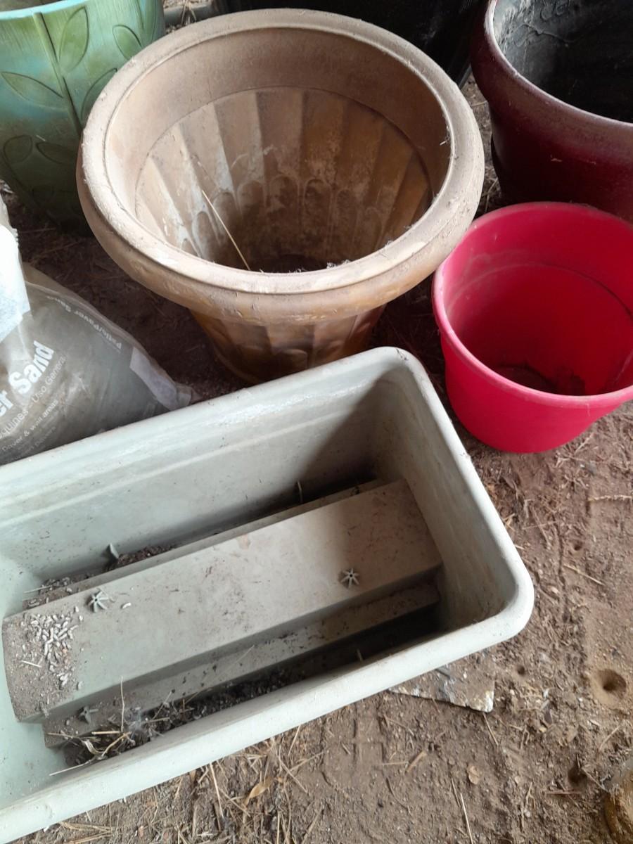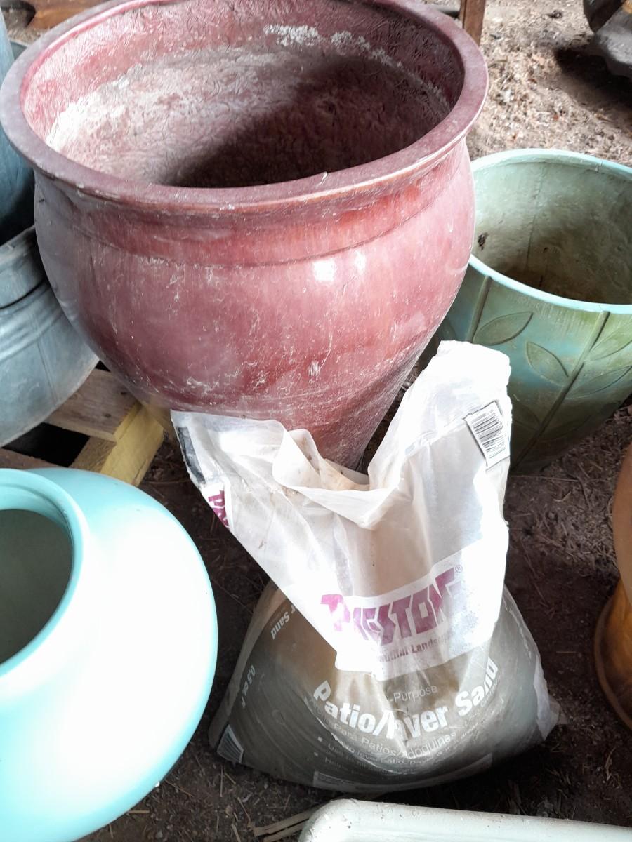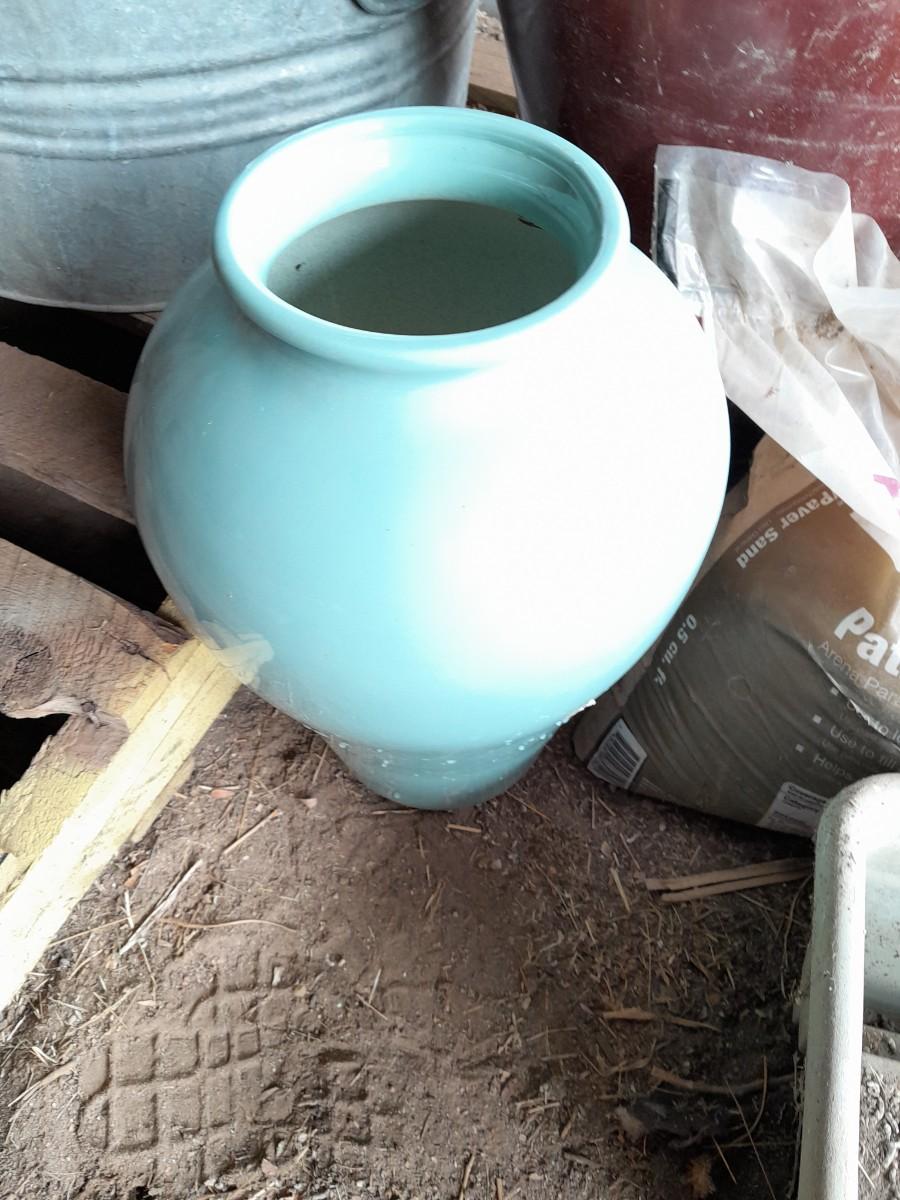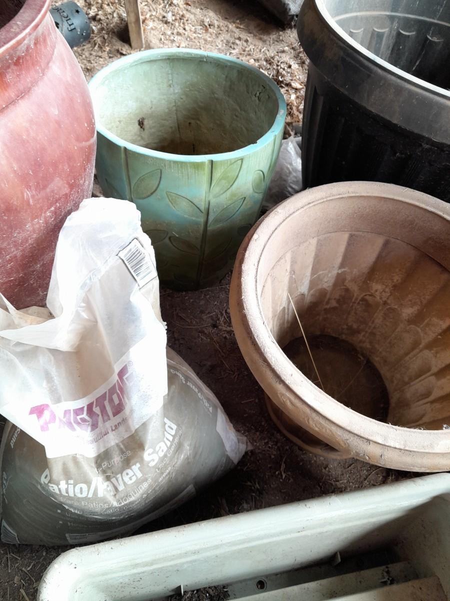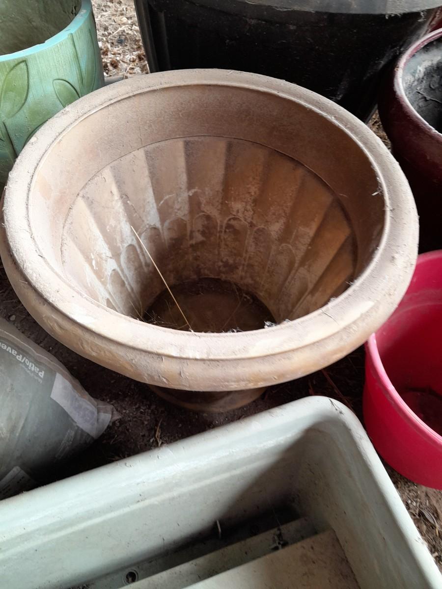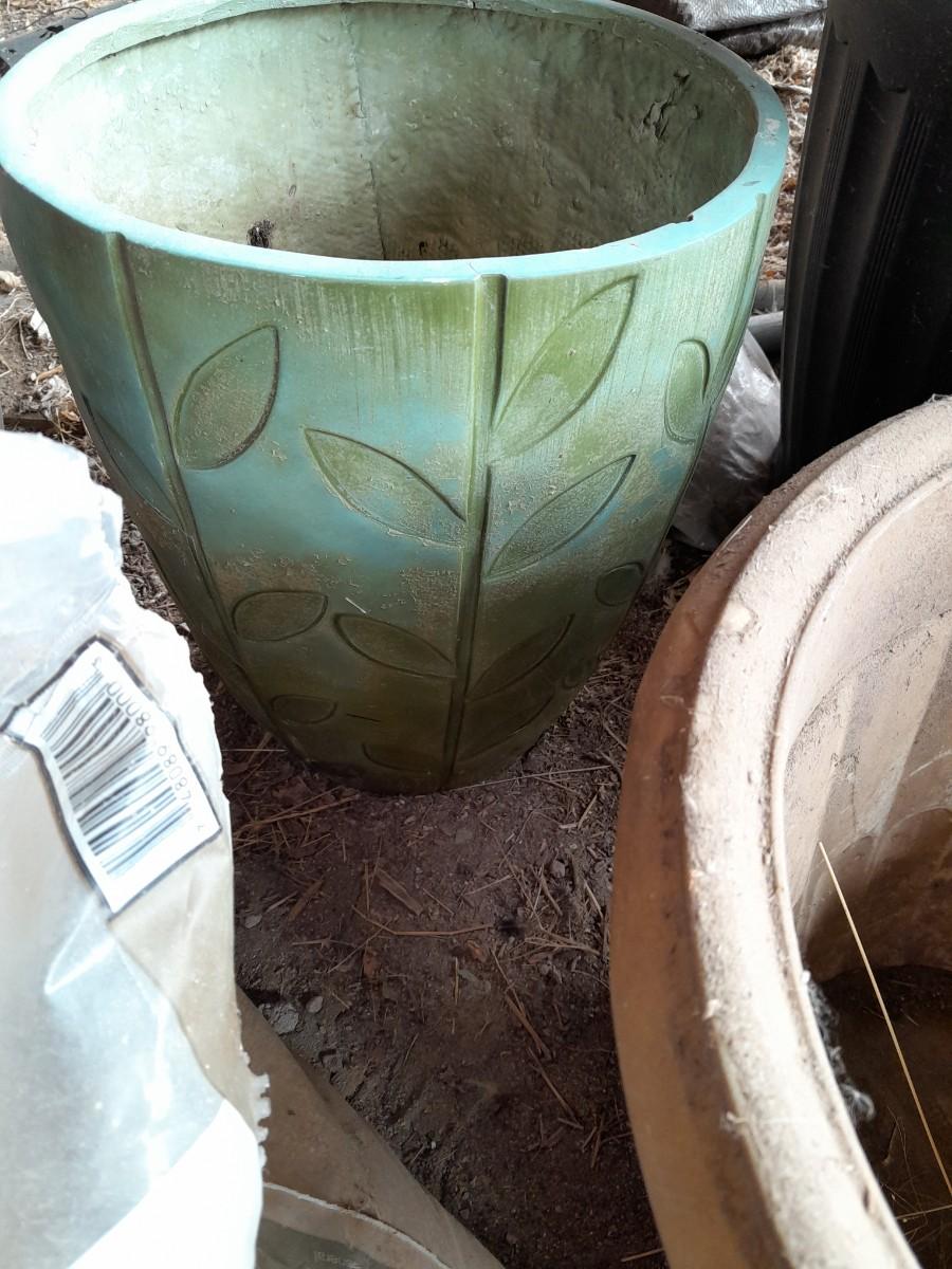 LARGE VARIETY OF FLOWER POTS, AND A VASE