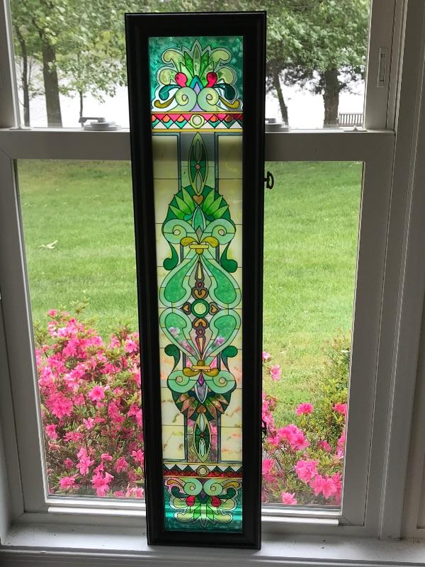 Beautiful stained glass style window decor measuring 40” long and 9” wide