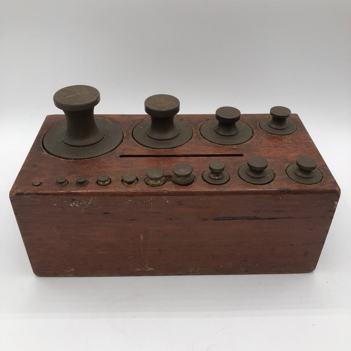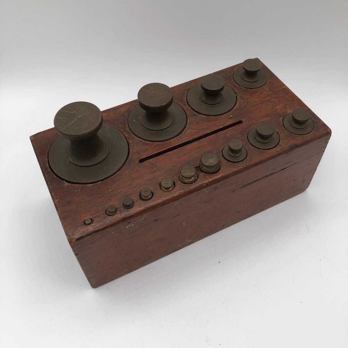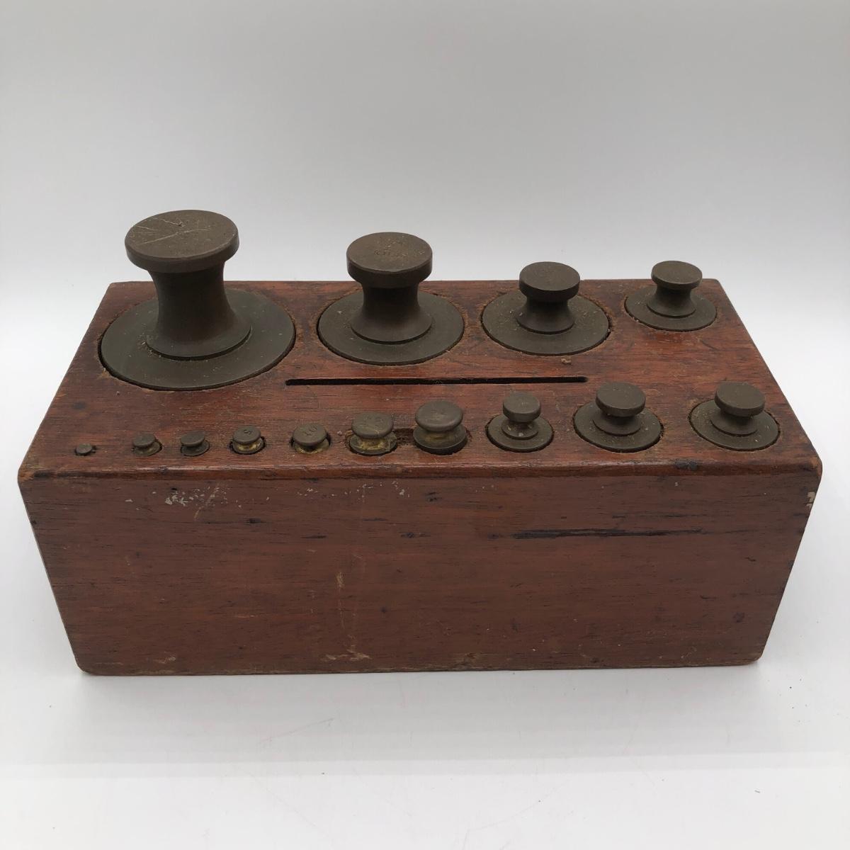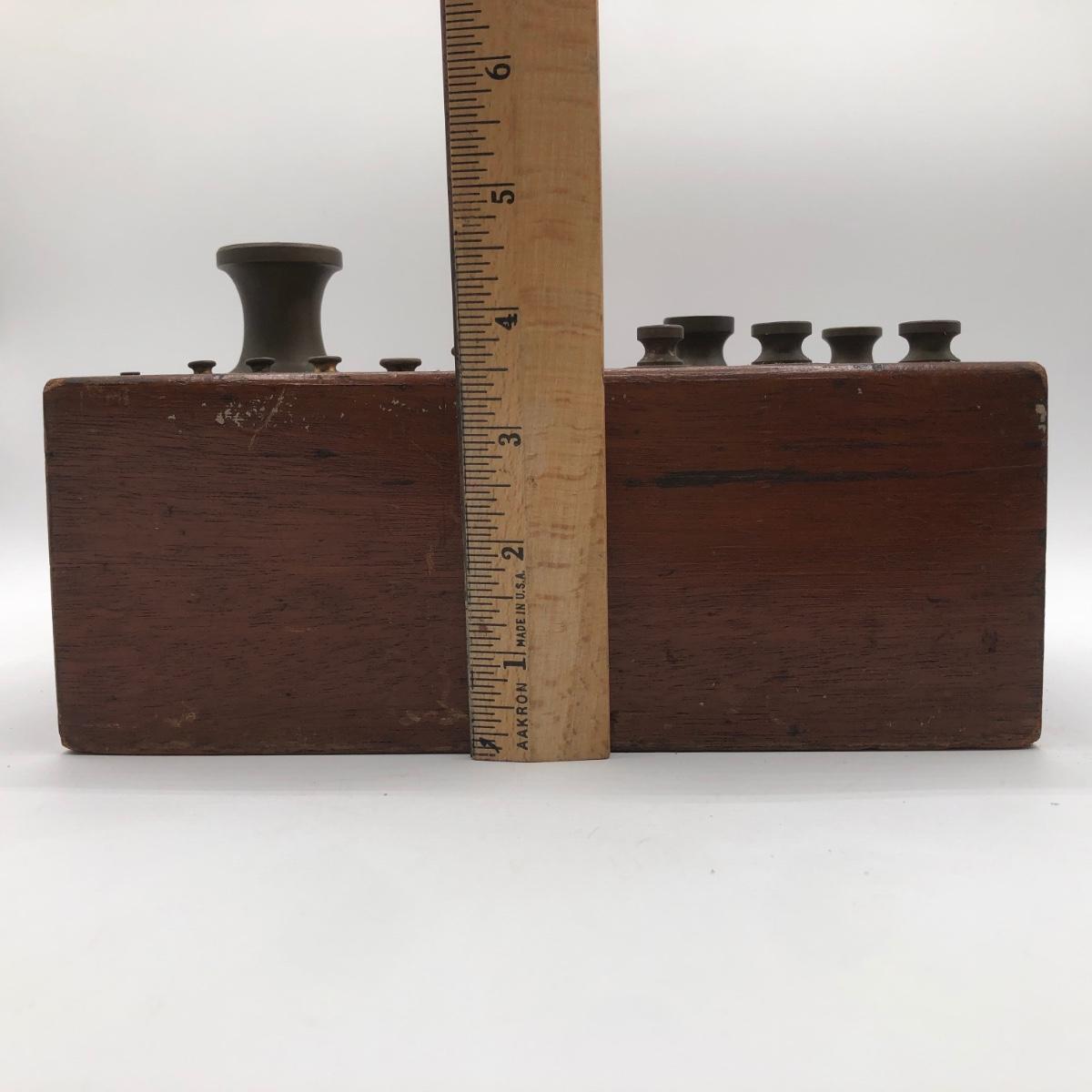 LOT 526K: Antique Set of Brass Weights w/ Wood Block Box
