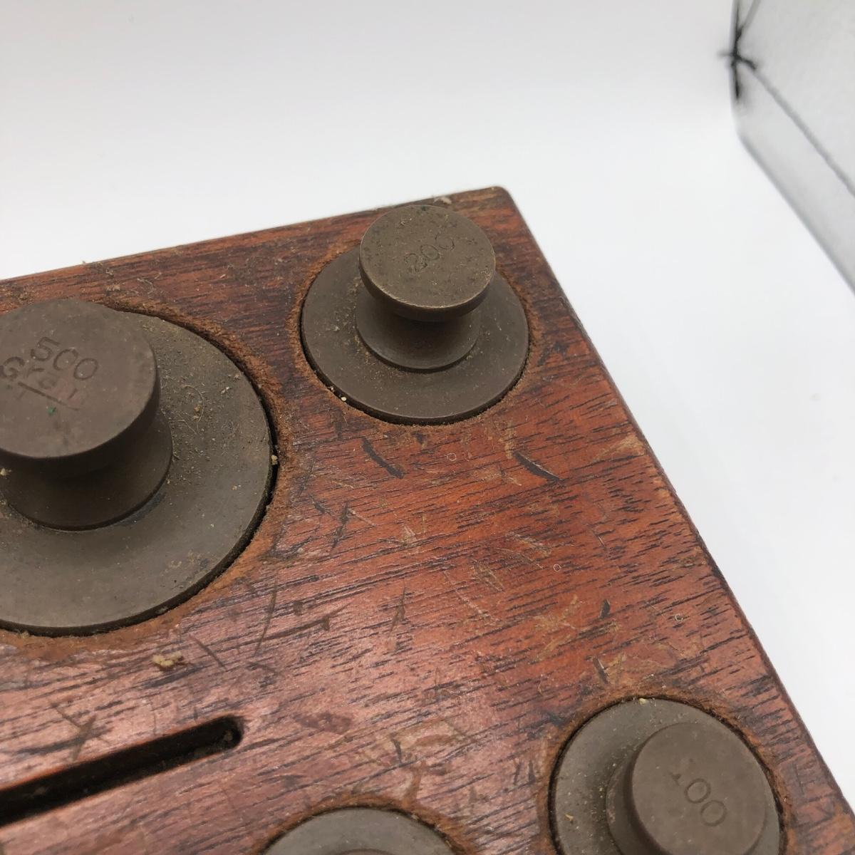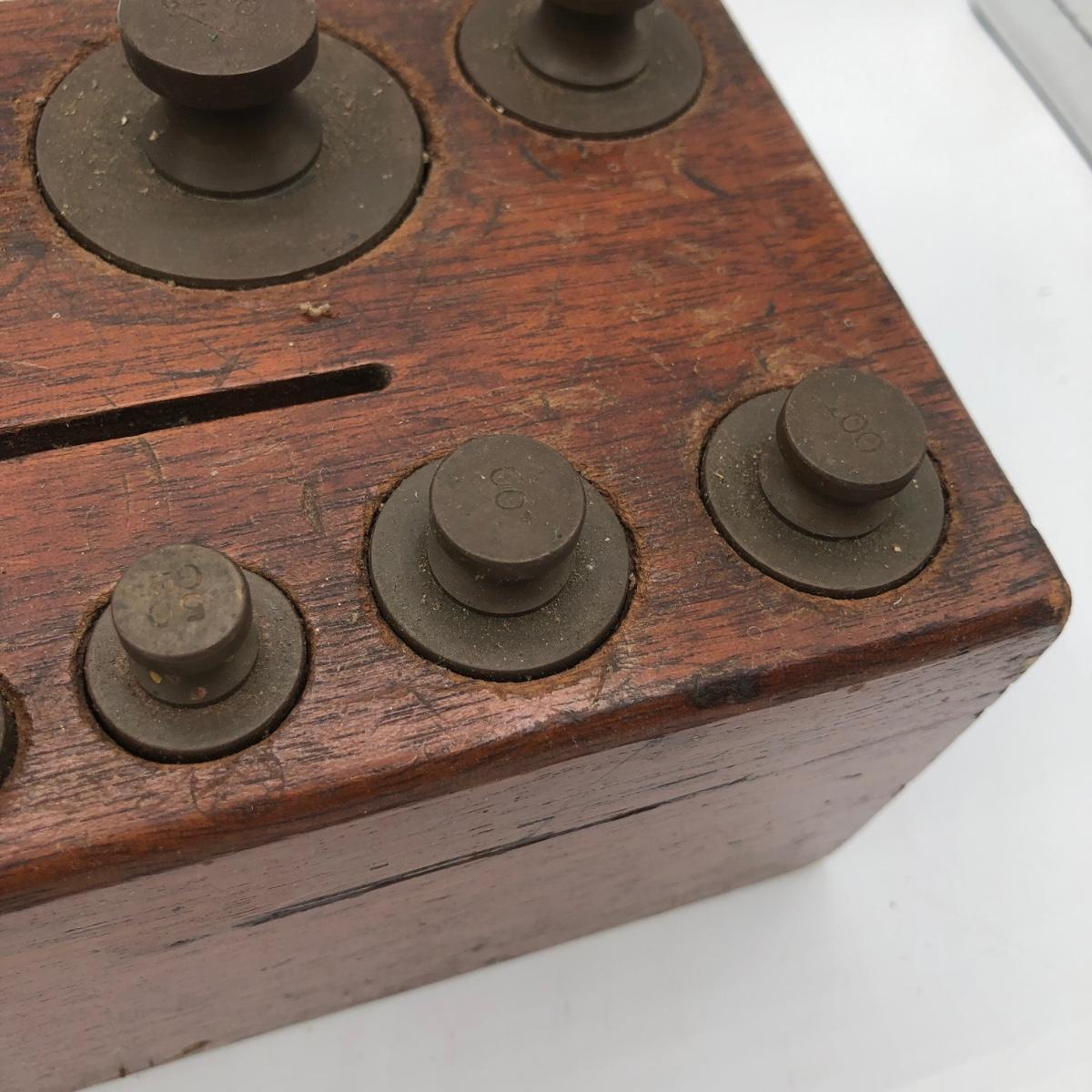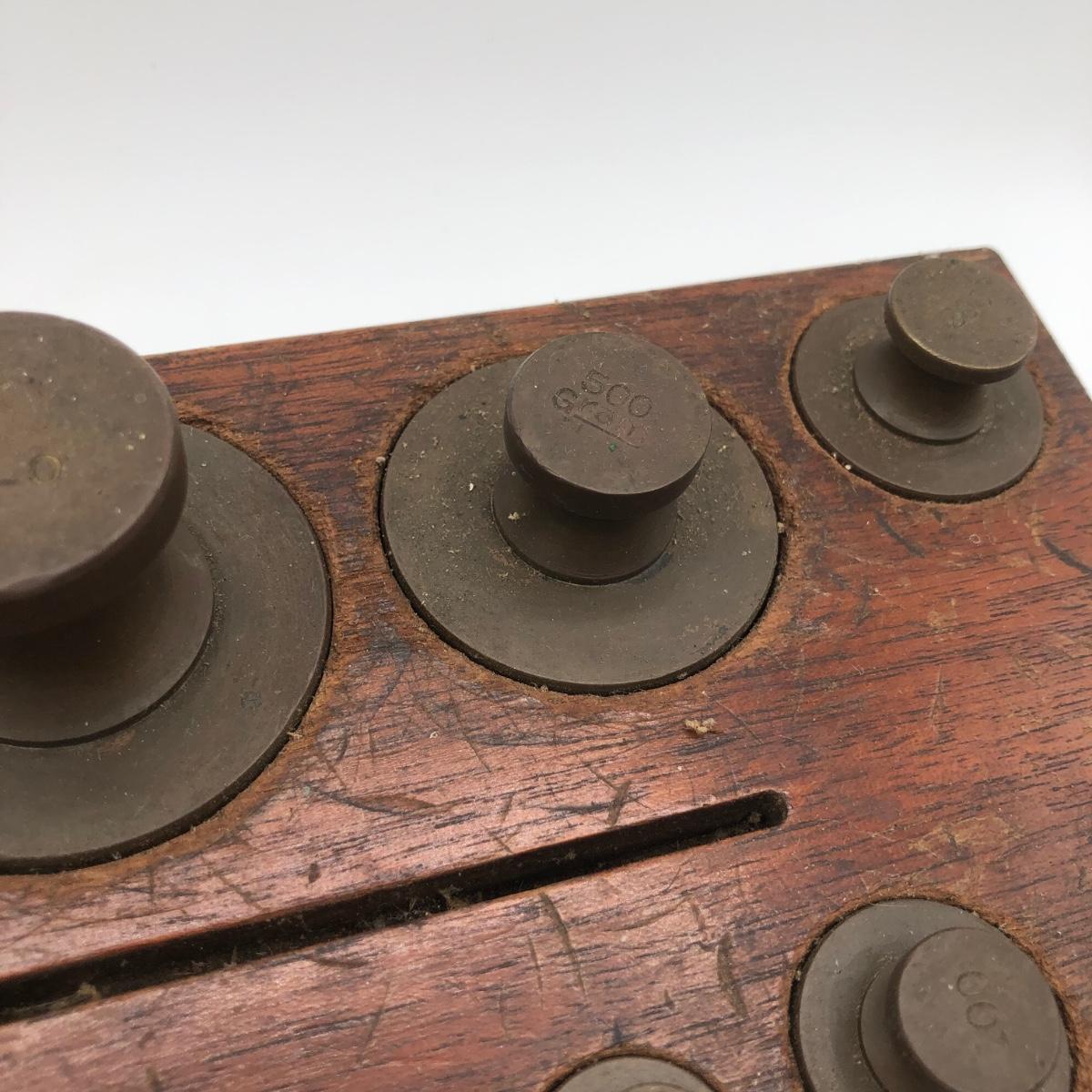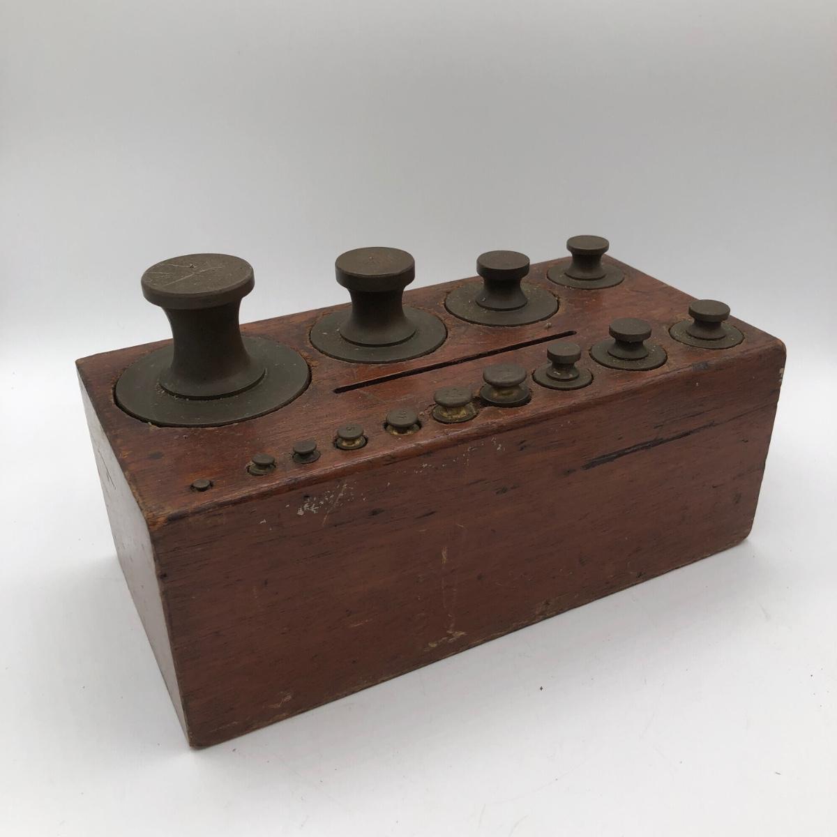 LOT 526K: Antique Set of Brass Weights w/ Wood Block Box