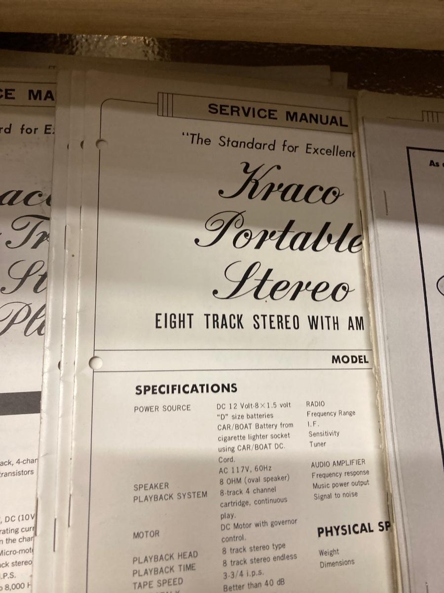 1949 HOFFMAN SERVICE MANUAL, SERVICE MANUALS FOR MANY 8 TRACK AND CASSETTE PLAYERS AND SOME FORD STEREO REPAIR MANUALS