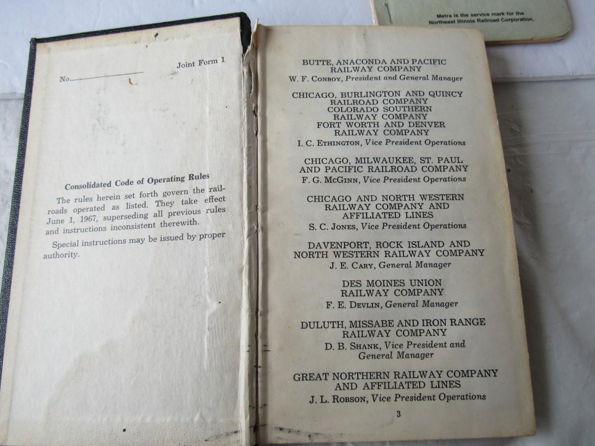 Lot 527: Vintage Consolidated Code of Operating Rules Railroad Info, and Metra Amtrak Bookelt