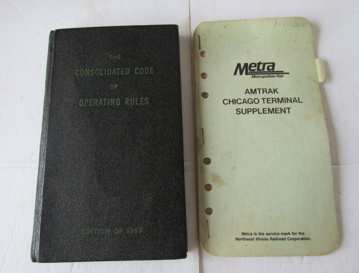 Lot 527:  Vintage Consolidated Code of Operating Rules Railroad Info, and Metra Amtrak Bookelt