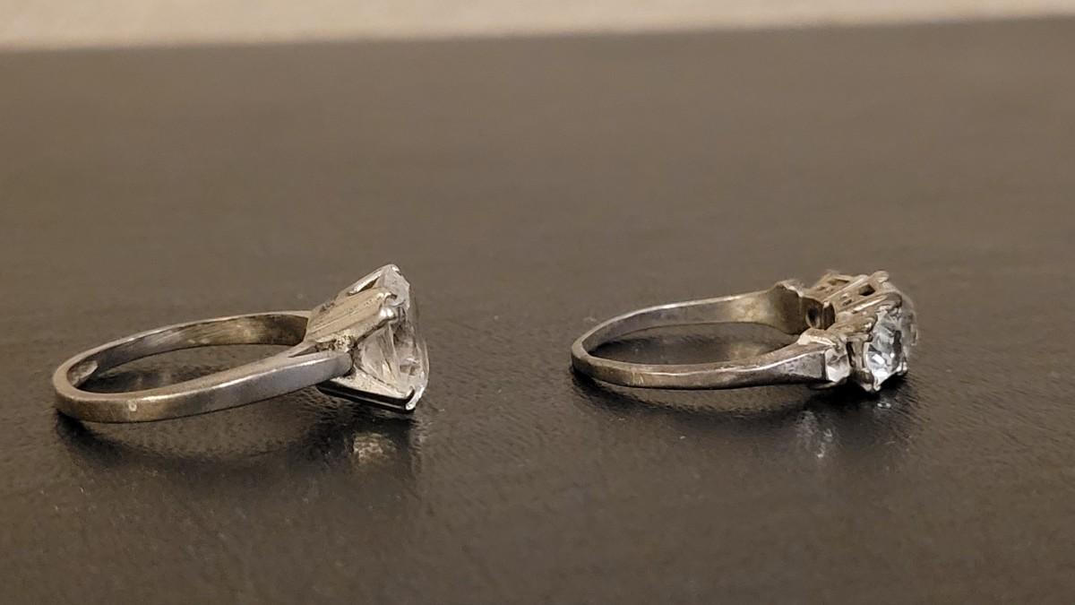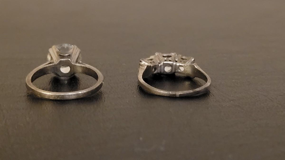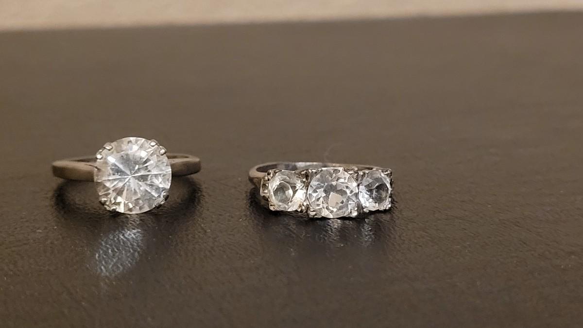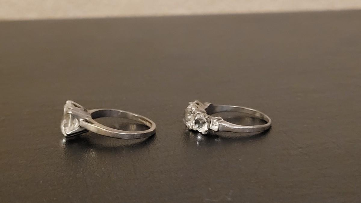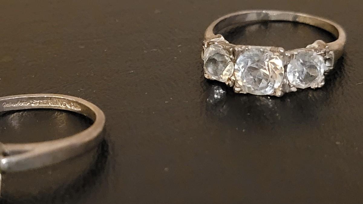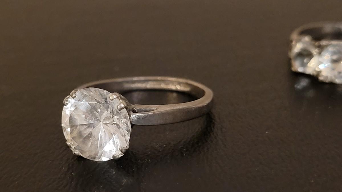 Lot 528: Gainsborough Sterling Solitare Faux Diamond Ring and Triple Faux Diamond Ring